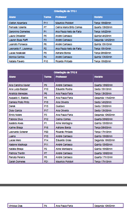 Horários das Orientações de TFG I e TFG II – semestre 2019/02