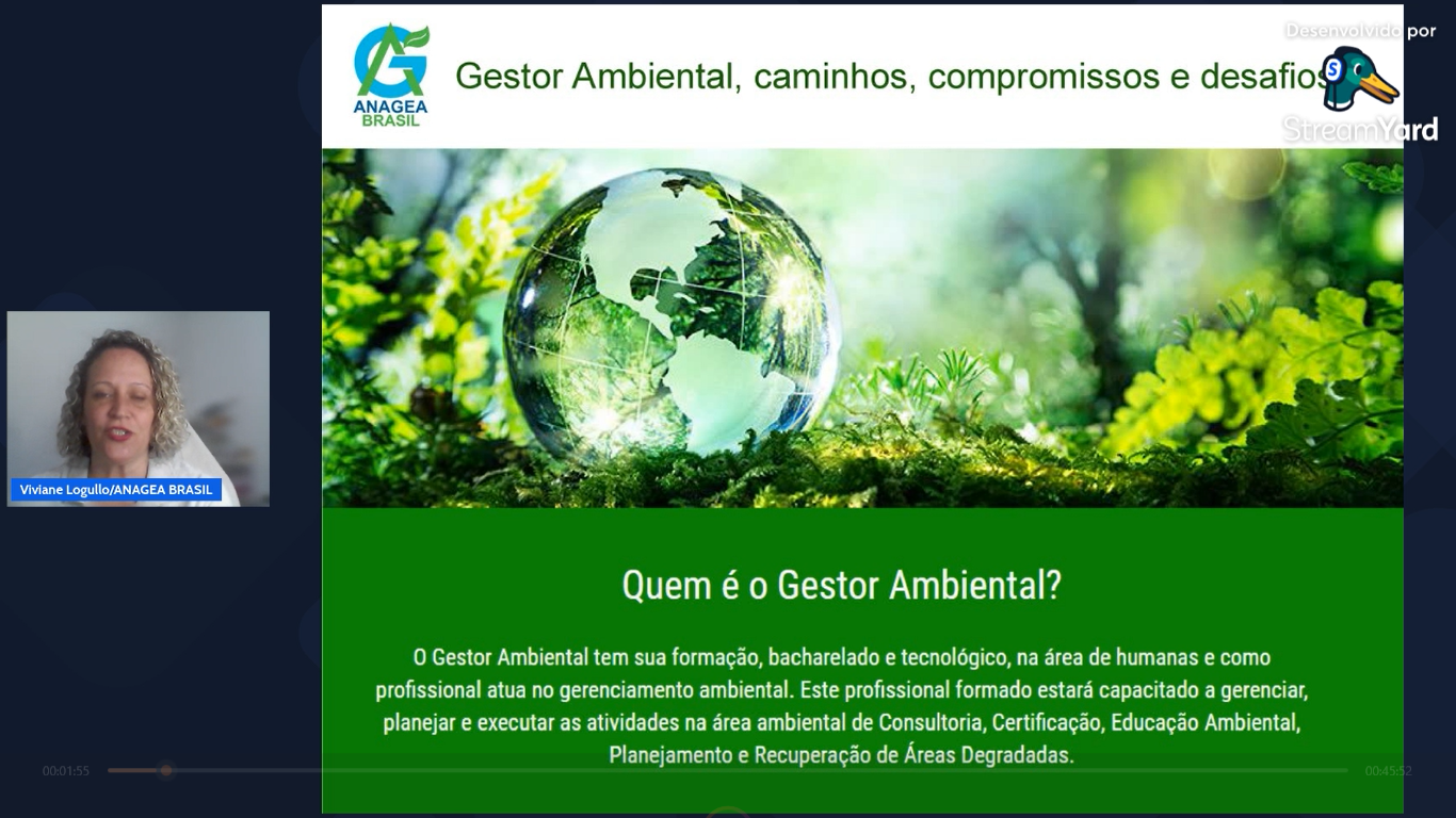 22/04/2025 – Vídeo-palestra ANAGEA/Brasil – Associação de Gestores Ambientais do Brasil com a Gestora Ambiental Viviane Logullo – debate entre professores e discentes – dinâmica coordenada pelos professores Eduarda Rangel, João Carlos Koglin, Celso Corradi e Maurício Pinto da Silva