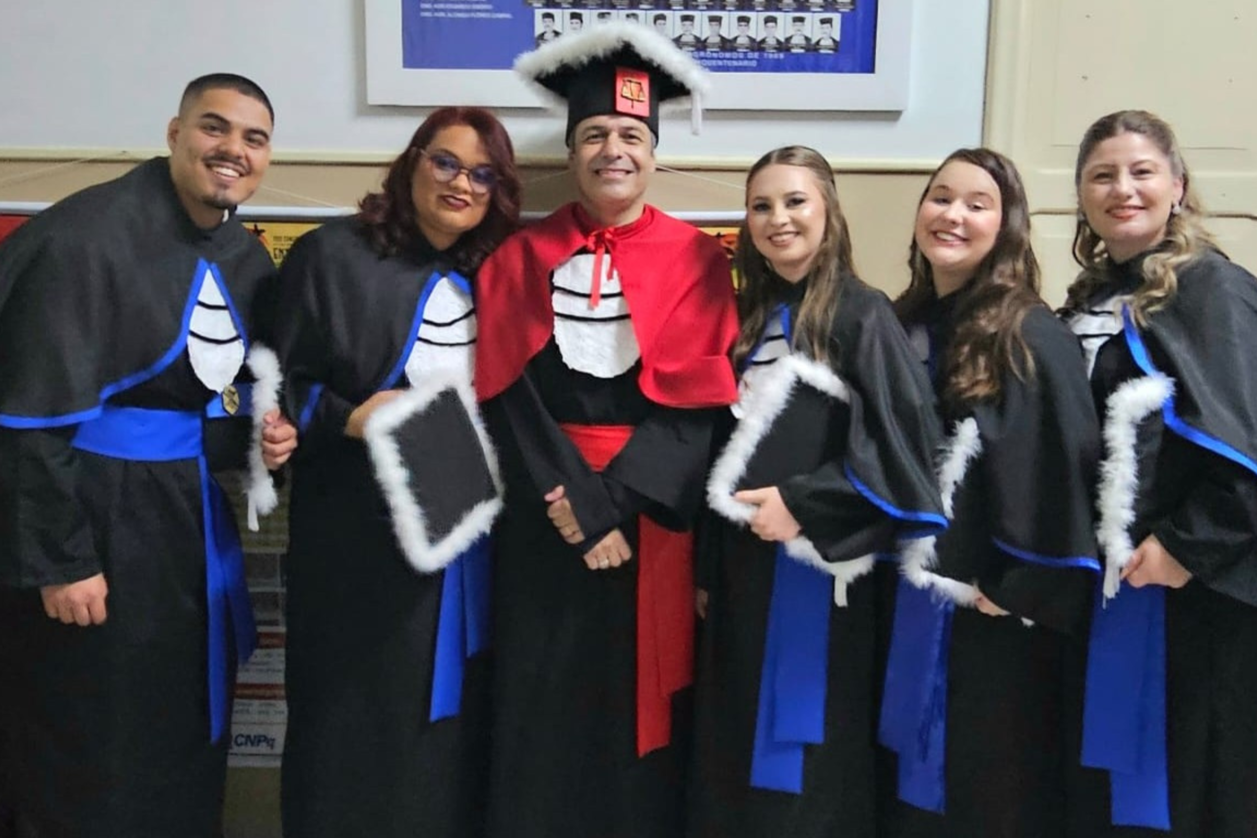 Os novos tecnólogos em Gestão Pública são Bruno Garcez Grecco, Letícia de Paula Faria Magalhães, Lianda Jaíne da Luz Rodrigues, Nicole da Rocha Loi e Pâmela Reis Cunha da Silva.