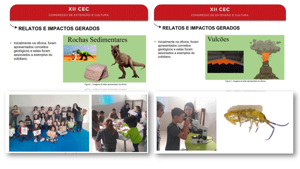 A proposta, inserida no contexto da extensão universitária, busca aproximar o conhecimento científico da comunidade, despertando nos estudantes o interesse pela conservação do solo por meio de metodologias lúdicas e criativas. Entre elas, destacam-se atividades que associam rochas, dinossauros, Pokémon e Minecraft para explicar a formação e importância dos solos, além de oficinas práticas com observação e análise de amostras, promovendo o aprendizado por meio da experimentação.