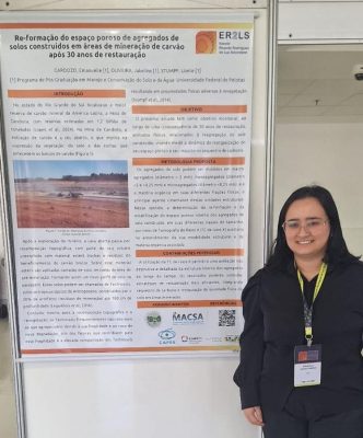 Durante o XII Congresso de Extensão e Cultura (CEC 2025) da UFPel, realizado de 20 a 23 de outubro no Campus Anglo, a doutoranda Emanuélle Soares Cardozo, integrante do GRAEM, apresentou o trabalho desenvolvido sob orientação da Prof.ª Dr.ª Juliana Brito da Silva, voltado à valorização do solo como recurso ambiental essencial ao equilíbrio dos …