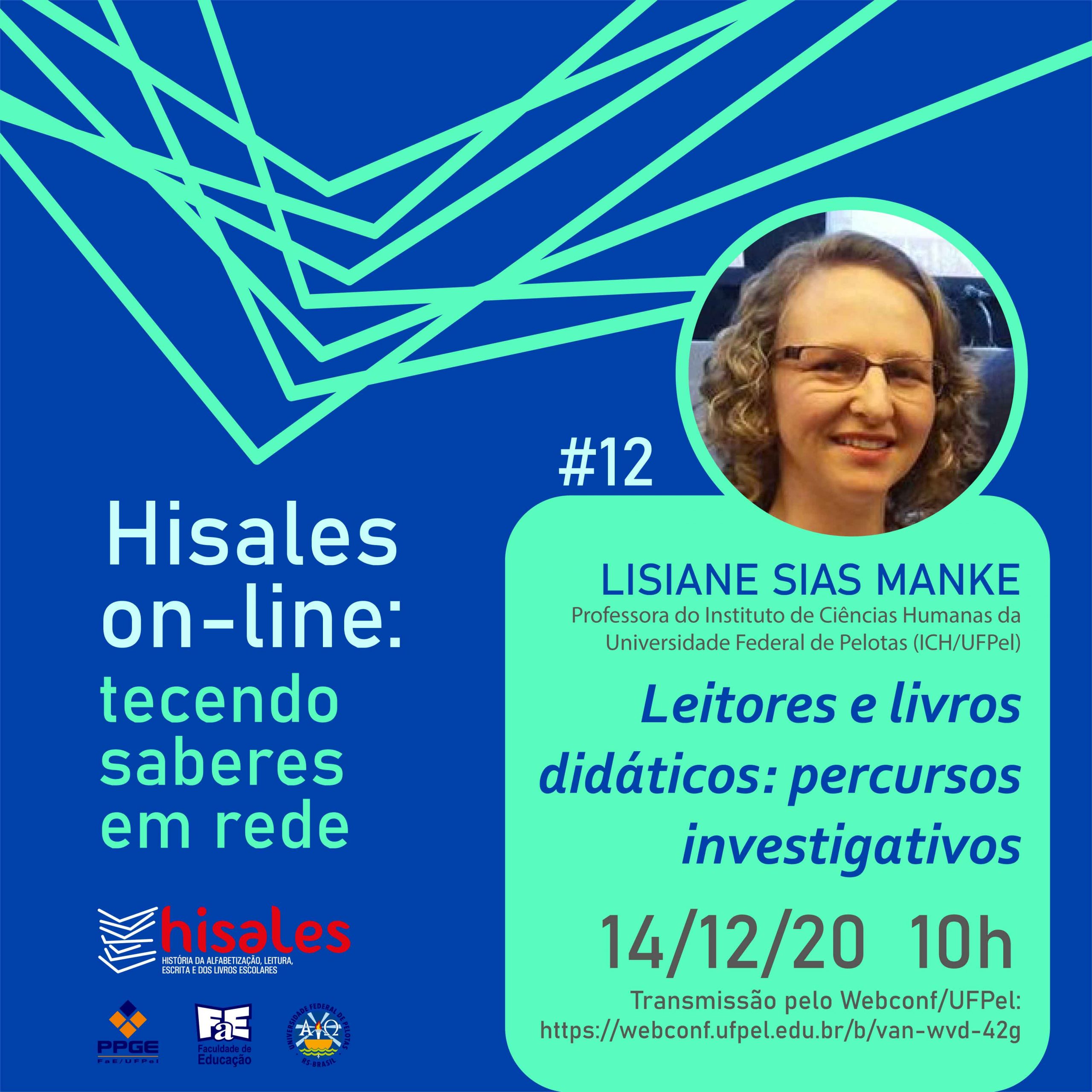 “Hisales on-line: tecendo saberes em rede” é um projeto de extensão do Hisales, desenvolvido durante a pandemia. São falas temáticas com a participação de convidados, em encontros quinzenais, nas segundas-feiras às 10h, com transmissão pelo Webconf da UFPel.