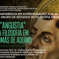 O Departamento de Filosofia da Universidade Federal de Pelotas convida para a Conferência em comemoração aos 20 anos de Grupo de Estudos de Filosofia Medieval: A “Angustia” da Filosofia em Tomás de Aquino, ministrada pelo Prof. Dr. Andrey Ivanov, Professor da Universidade Estadual de São Paulo e Presidente da Sociedade Brasileira para o Estudo da Filosofia Medieval. Local: SALA 316 – IFISP (R. Alberto Rosa, 154) Data: 30 agosto de 2023, quarta-feira Horário: 17:30