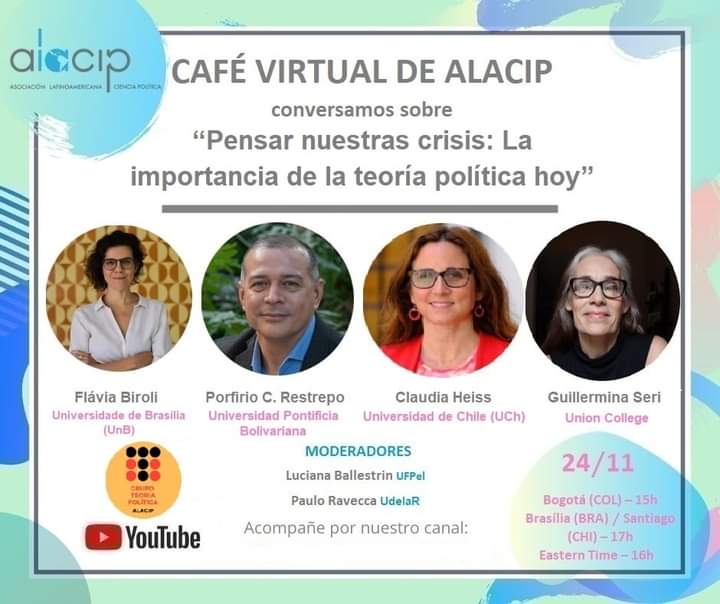 Descripción: El objetivo de la actividad es mostrar la relevancia de la teoría política para pensar la contemporaneidad. Se abordarán diferentes temas: 1) su pluralidad interna y relación con la ciencia política y con otras disciplinas como la historia y la filosofía; 2) su rol en la educación de las nuevas generaciones; 3) sus desarrollos específicos en América Latina; y 4) su importancia para la praxis democrática.