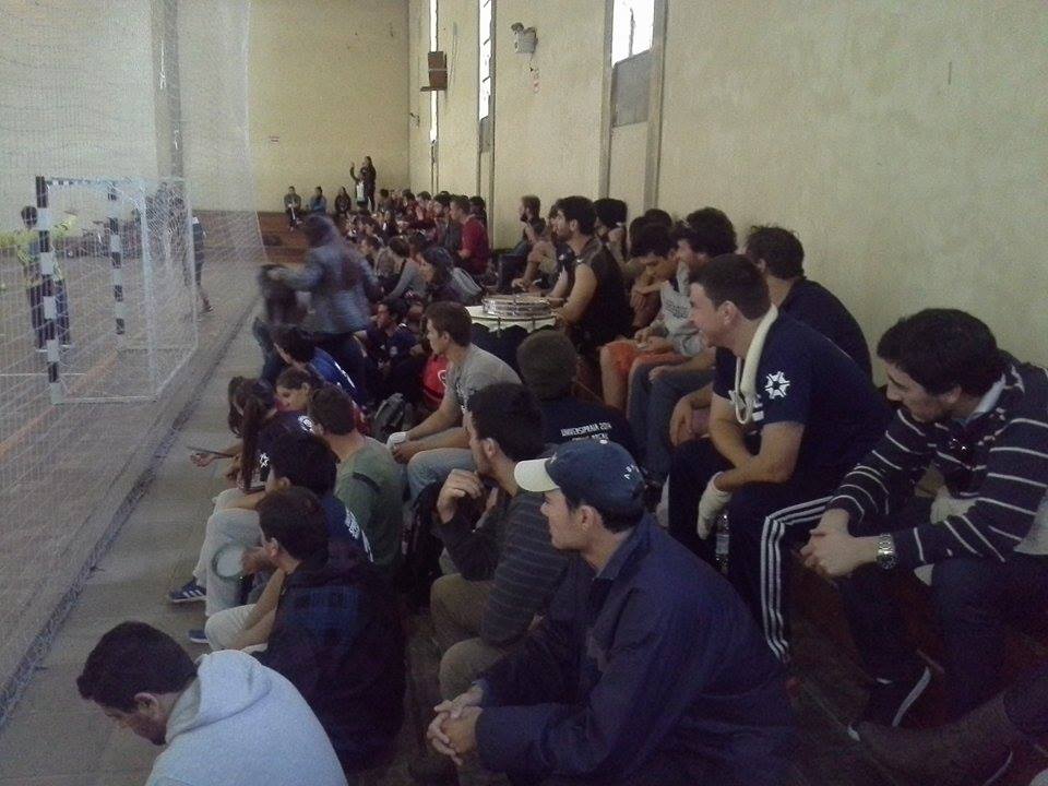 As arquibancadas lotadas e as batucadas das charangas transformaram o ginásio da ESEF num verdadeiro caldeirão nas finais dos Jogos da UFPEL. Em quadra as equipes classificadas para as finais do handebol.