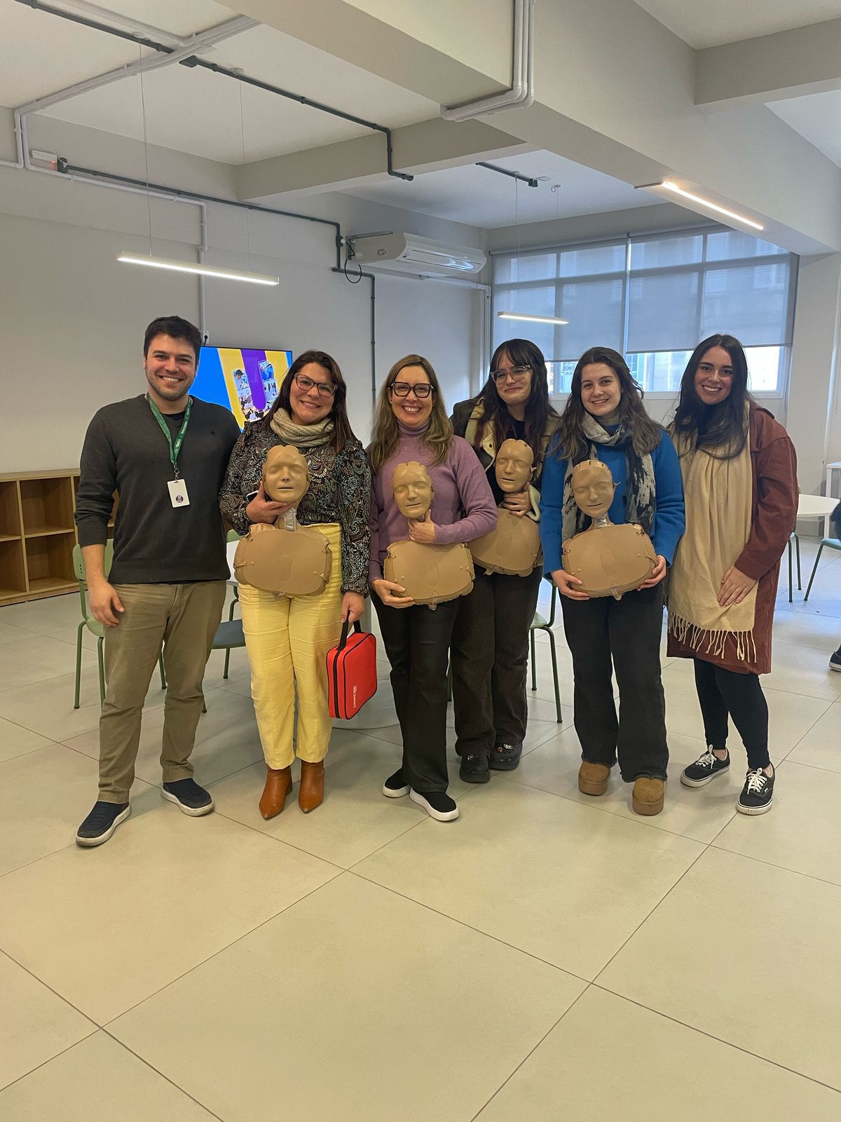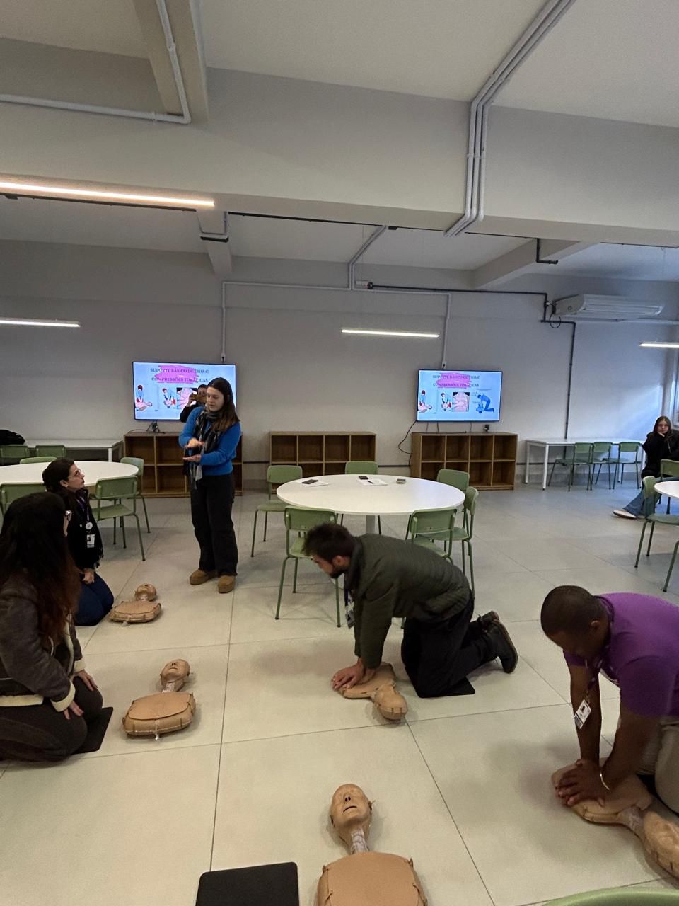 No dia 15/05/25 bolsistas do projeto realizaram uma oficina de treinamento em primeiros socorros para os colaboradores da Universidade Católica de Pelotas, com treinamento em: