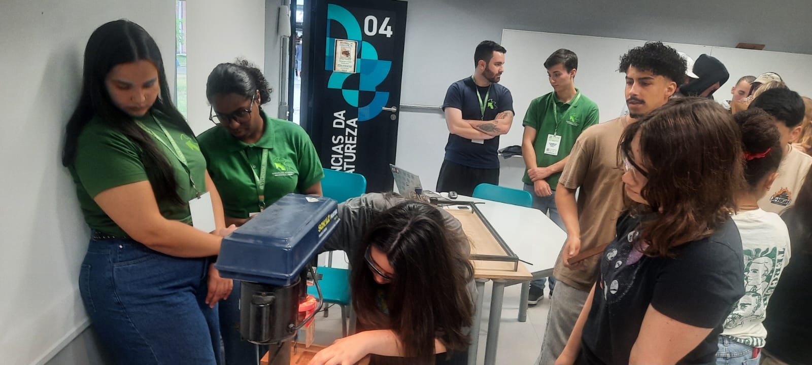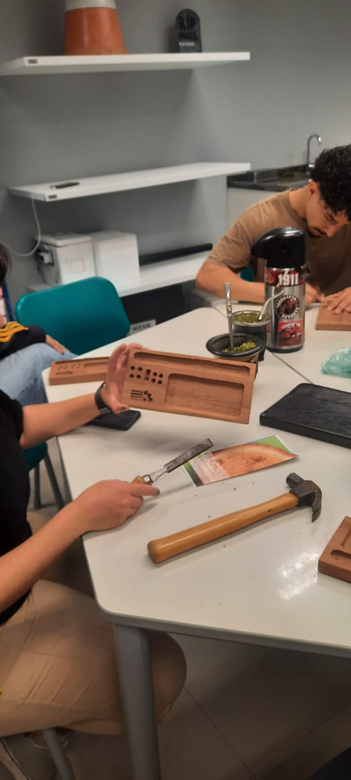 No período da manhã do dia 07 de novembro de 2025 discentes e docentes do curso de graduação em Engenharia Industrial Madeireira – EIM vinculados ao Centro de Engenharias da UFPel realizaram a Oficina de Pequenos Objetos em Madeira – POM como uma ação para divulgação do curso de bacharelado na Escola SESI de Ensino Médio Eraldo Giacobbe, localizada em Pelotas – RS, sendo ofertada aos alunos do 3º Ano. A Prof. Érika Ferreira ministrou a oficina juntamente aos discentes Maurício Ramos, Pedro Tortelli, Daniela Silveira, Amanda Corrêa e Ana Júlia Gonçalves, com apoio da coordenadora do curso de EIM Prof. Merielen Lopes e Prof. Leonardo Oliveira. Nesse contexto, foram produzidos dois modelos de produtos em madeira de cedrinho: um porta celular inspirado no produto desenvolvido pelo Laboratório de Produtos Florestais – LPF (Serviço Florestal Brasileiro – MMA) e um organizador de mesa que teve como fonte de inspiração um produto visualizado na plataforma Pinterest pelo discente Maurício Ramos. Todos os produtos tiveram a gravação a laser do logo do curso de EIM bem como seu acesso a plataforma Instagram por meio do CNC laser do discente Pedro Tortelli (empreendedor da PS Tábuas).