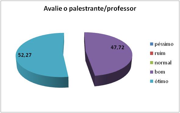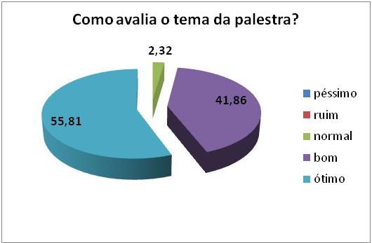 Para avaliar a palestra foram entregue questionários elaborados especificamente para esta finalidade e aplicados aos participantes presentes, onde foram considerados o tema e demais aspectos abordados na palestra ministrada.