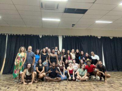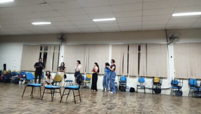 Balões ao chão, paredes humanas iluminam o que está oculto à visão