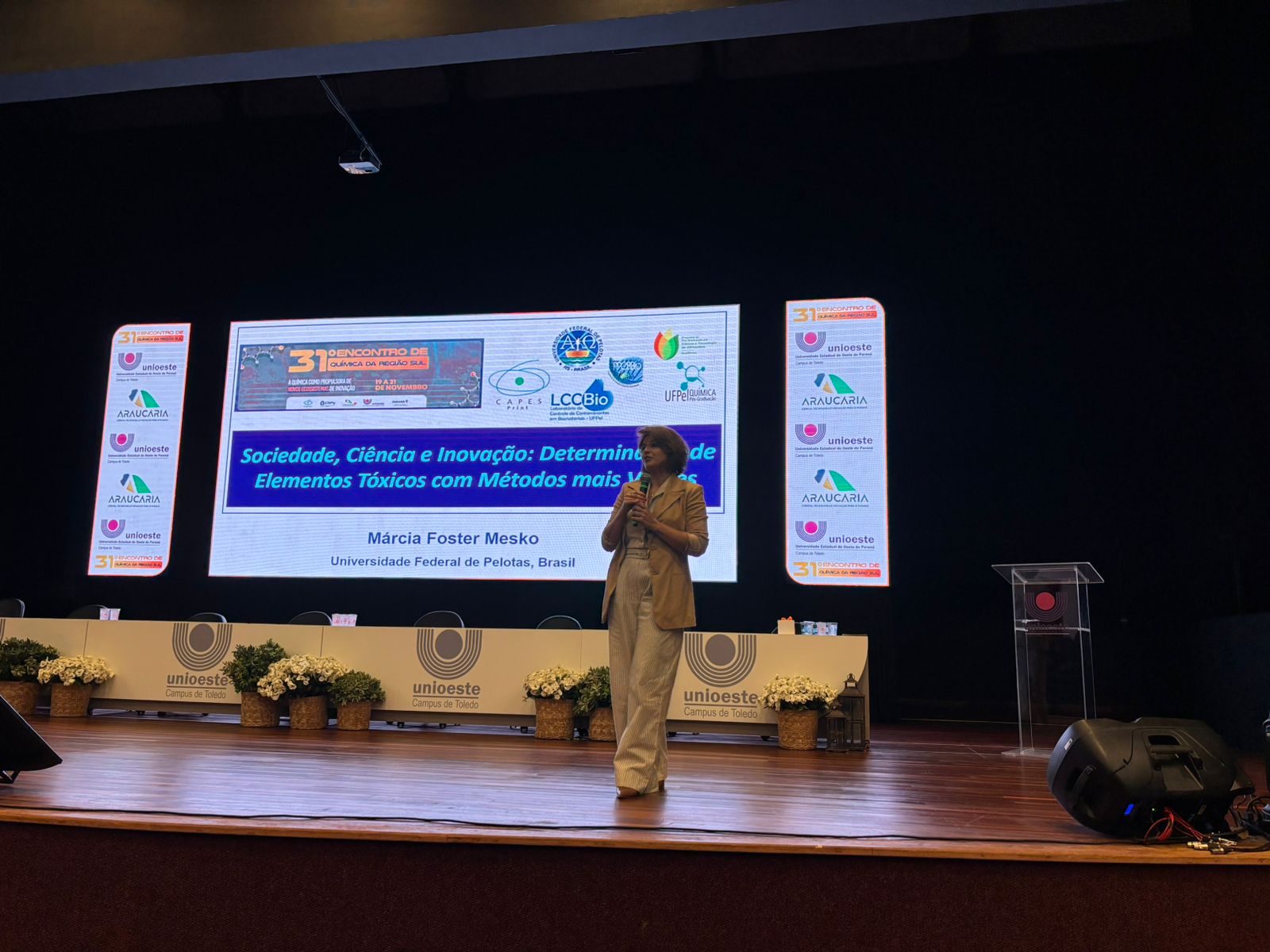 Em outubro de 2024, a Profª. Drª. Marcia Foster Mesko esteve novamente na China, cumprindo uma agenda com diferentes atividades, eventos e reuniões. Ela participou da 10th IUPAC – International Conference on Green Chemistry, em Beijing, na China. O trabalho submetido na conferência ganhou prêmio destaque como melhor pôster da sessão, intitulado “Solvent-free fractionation of essential and non-essential elements from food waste: a waste valorisation strategy”, desenvolvido em parceria com a Profª. Drª. Paolla de Azevedo Mello, docente da Universidade Federal de Santa Maria. Além […]