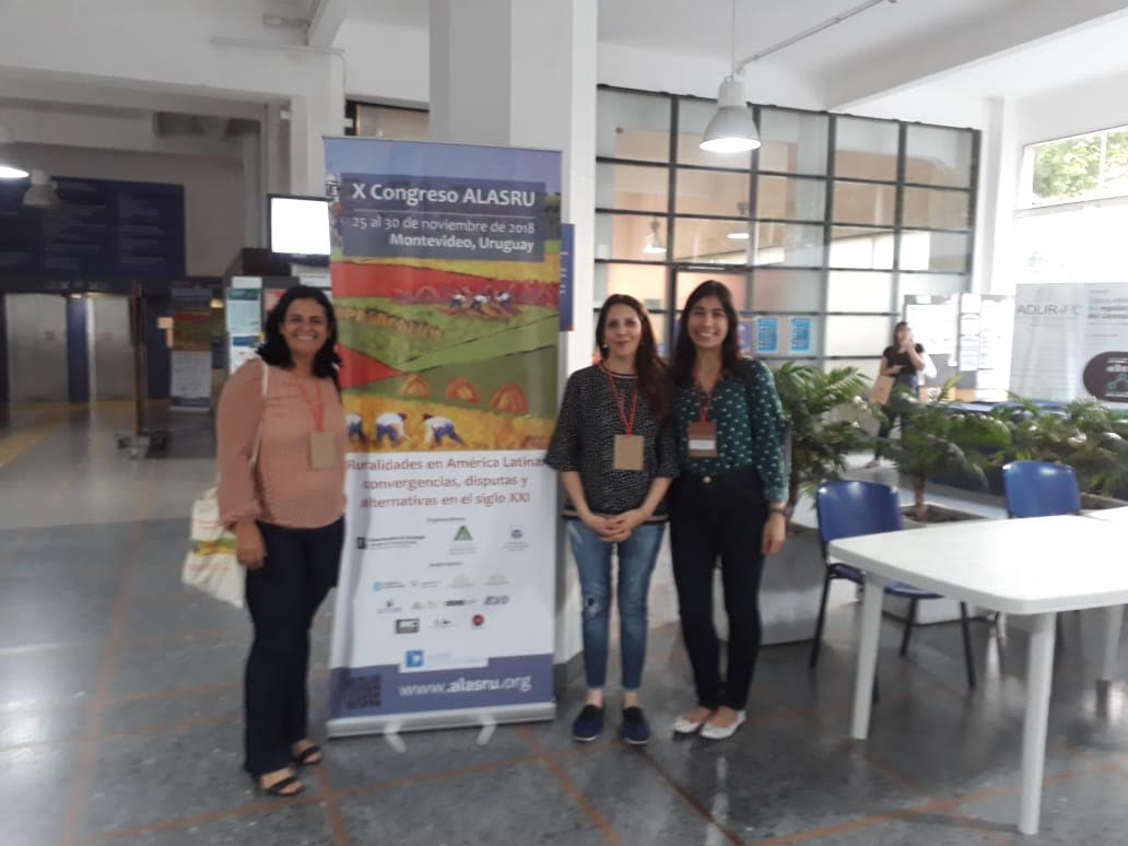 A professora Giancarla Salamoni e a doutoranda Maiara Tavares Sodré – UNESP- Presidente Prudente apresentaram trabalho no X Congreso Asociación Latinoamericana de Sociología Rural, que foi realizado em Montevidéu – Uruguai, entre os dias 25 a 30 de novembro de 2018. O trabalho compõem a agenda de pesquisas do projeto DIAGNÓSTICO SOBRE AS REPERCUSSÕES DO PAA E PNAE SOBRE OS SISTEMAS AGRÁRIOS FAMILIARES NO RS: estudos sobre as relações entre a agricultura familiar, políticas públicas e o desenvolvimento rural na escala local do Laboratório de Estudos Agrários e Ambientais – LEAA.