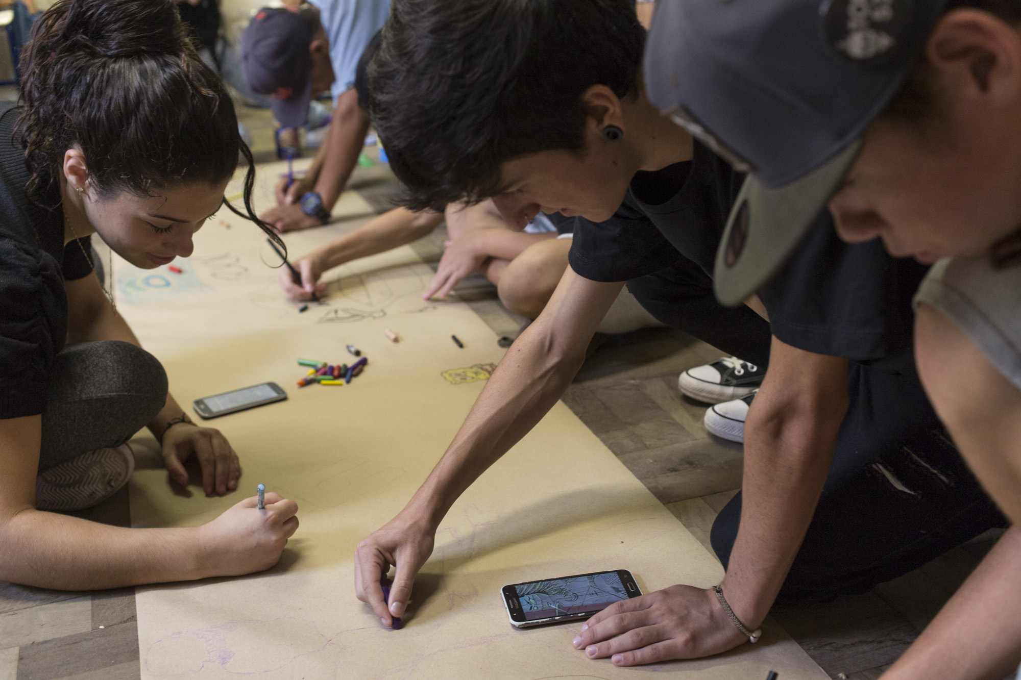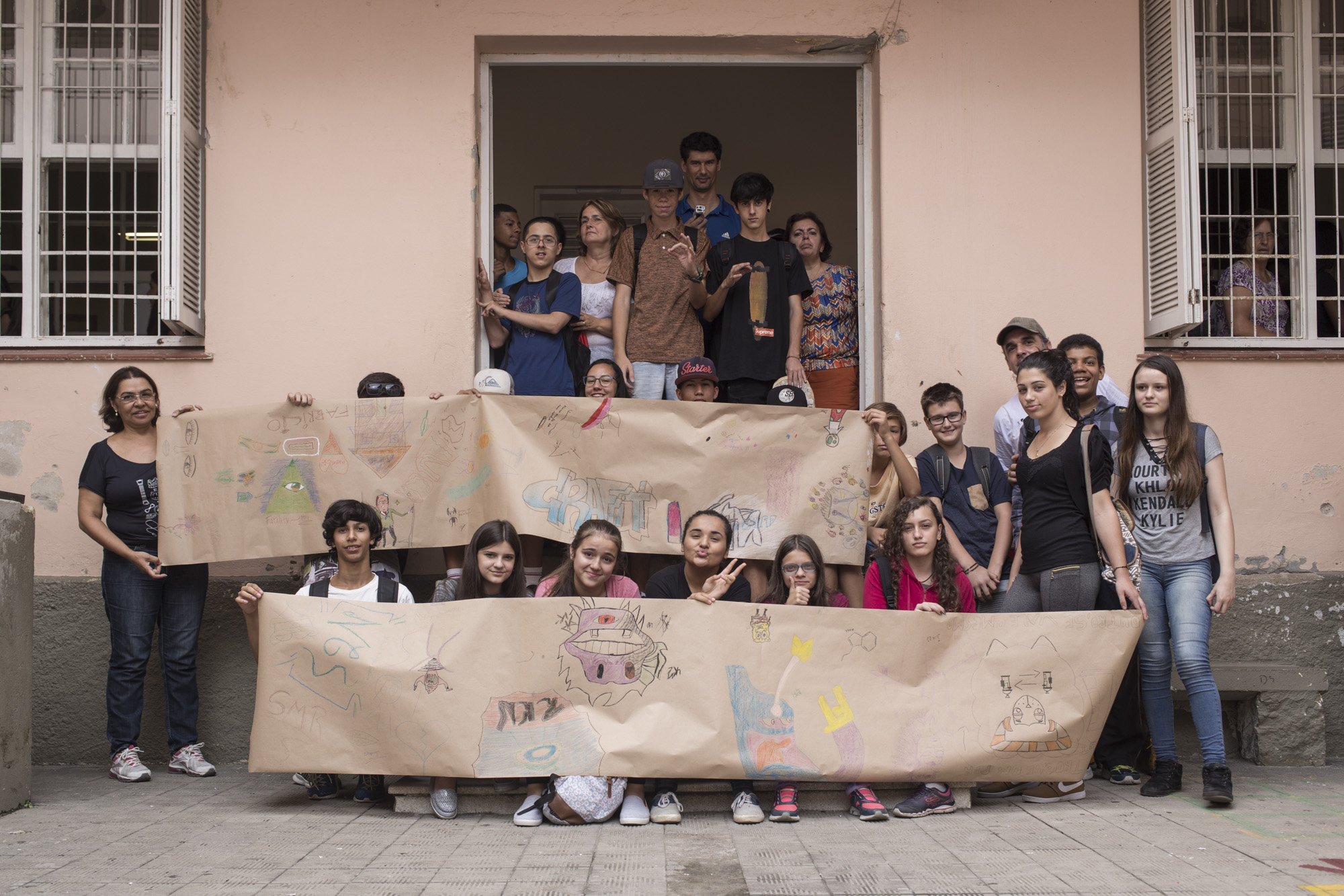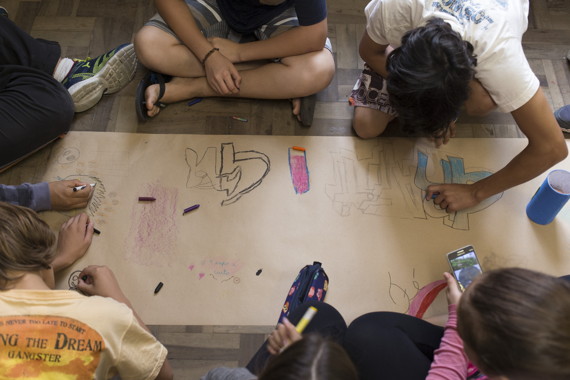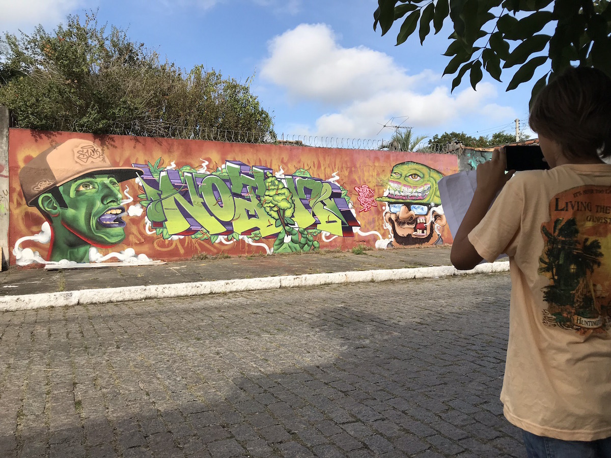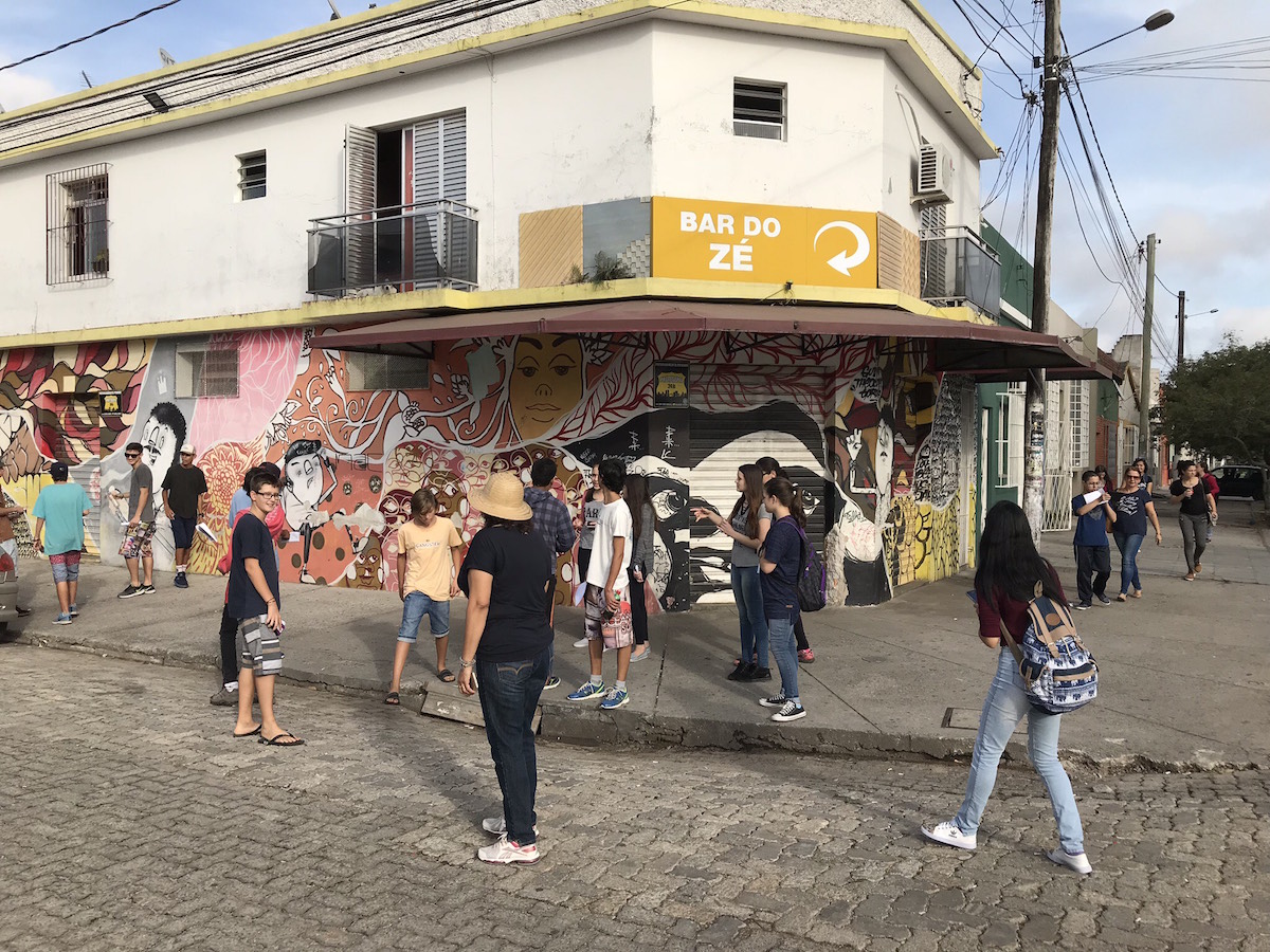 Atividade realizada com alunos da Escola de Ensino Fundamental Dr. Francisco Simões. Graffiti Tour. Pelotas/RS – Brasil. 24/abr/2018. Foto: Fabricio Barreto