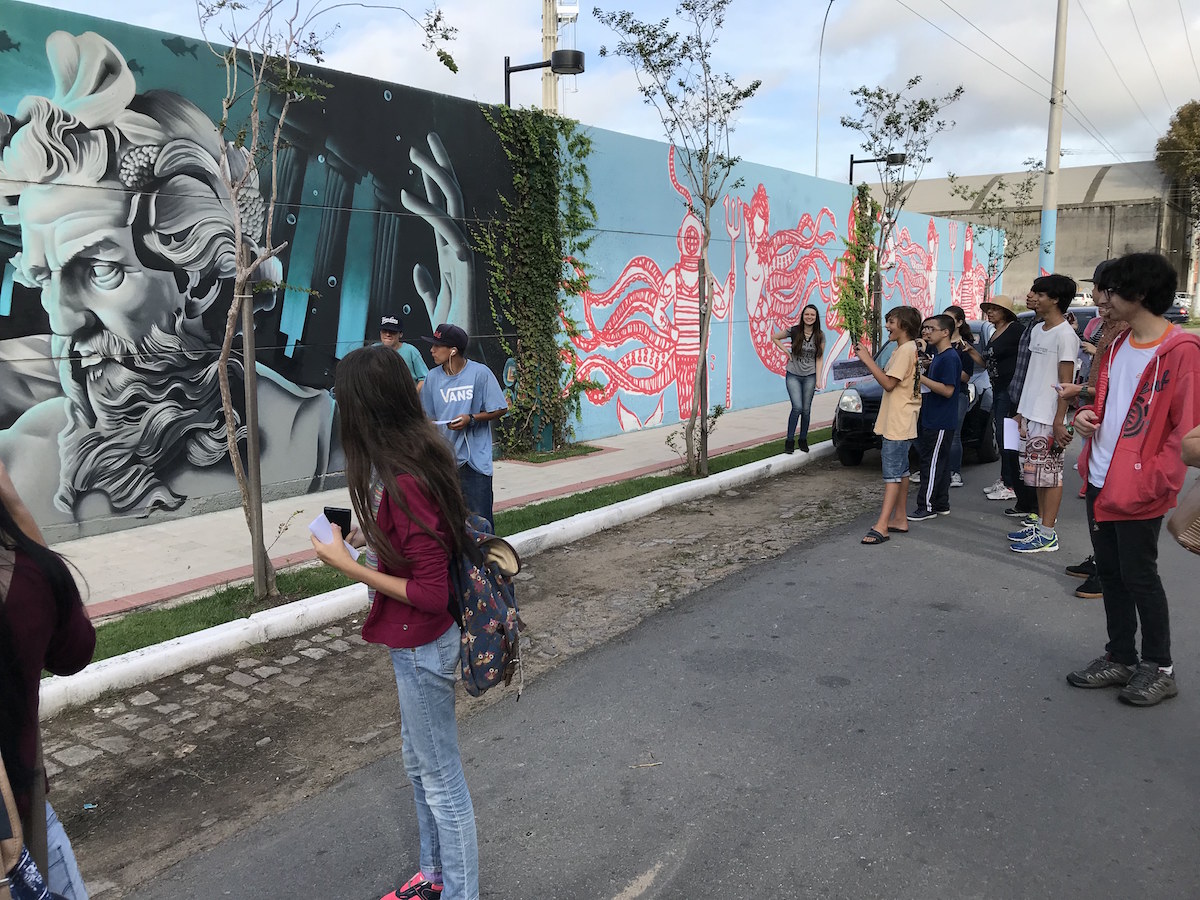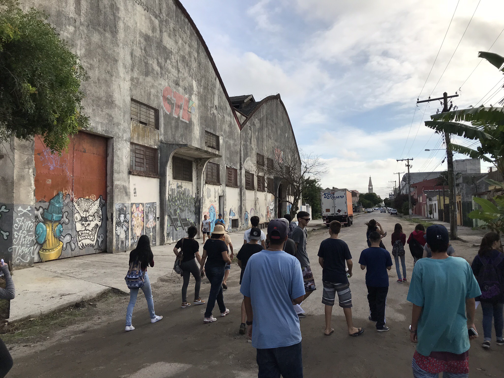 Graffiti Tour e oficina de atividades realizados no dia 24/abr/2018 com estudantes e professoras da Escola Francisco Simões, realizada por Fabrício Barreto, a partir de sua pesquisa de mestrado A CIDADE E SEUS GRAFFITI. UMA ETNOGRAFIA DE RUA NA REGIÃO PORTUÁRIA DA CIDADE DE PELOTAS/RS.
