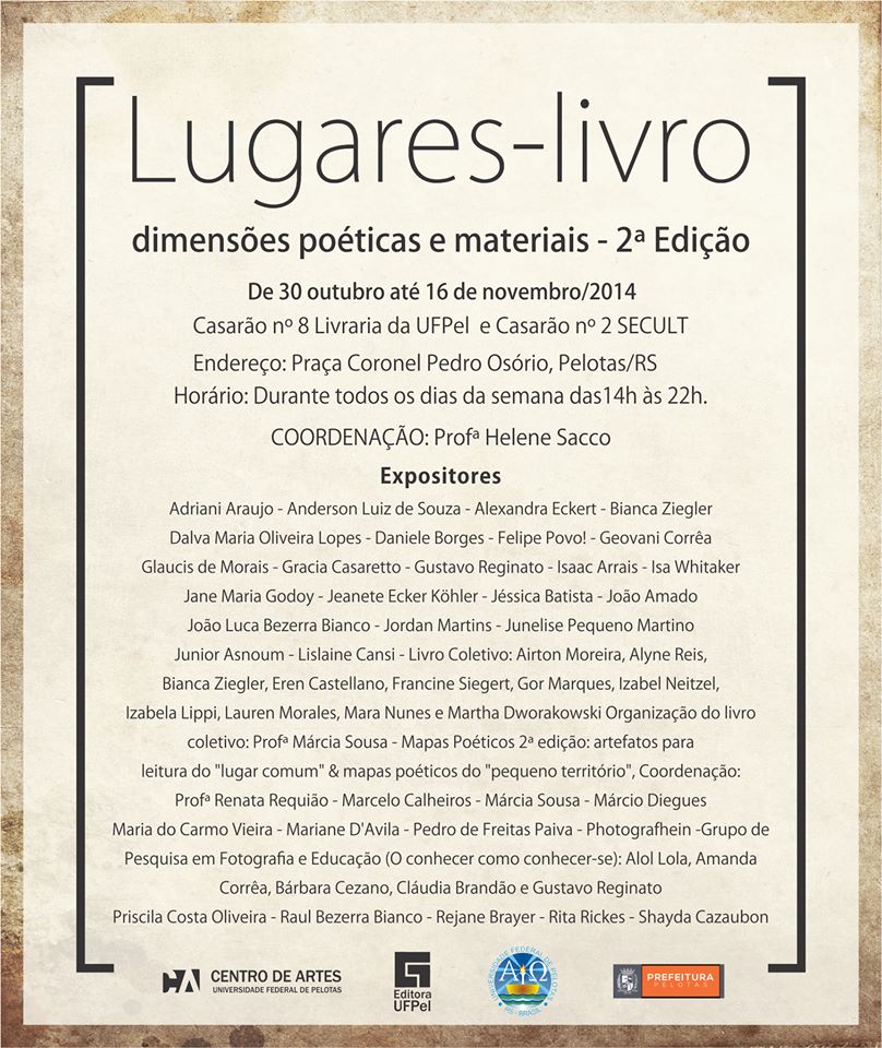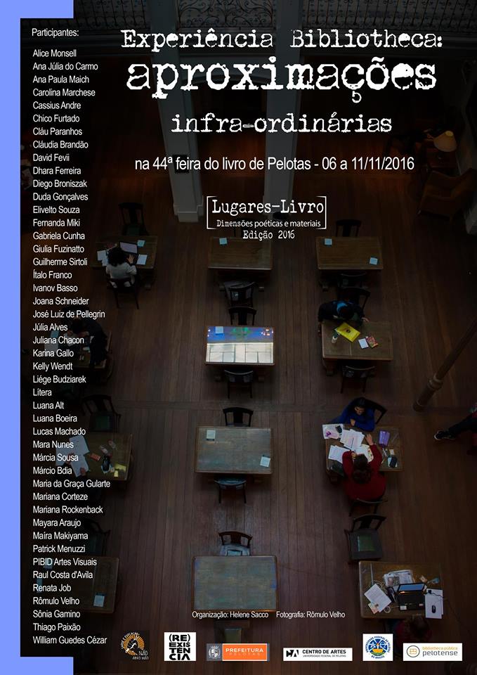 Eventos Print Experiência Bibliotheca – Aproximações Infra-ordinárias (2016) Entre […] 2015 Dos livros aos lugares, dos lugares aos livros – 2015 Dos livros aos lugares, dos lugares aos livros – 2015 Dos livros aos lugares, dos lugares aos livros – 2015 Lugar constelar – 2014 Dimensões poéticas e materiais – 2014 Dimensões poéticas e materiais – 2014 Dimensões poéticas e materiais – 2014