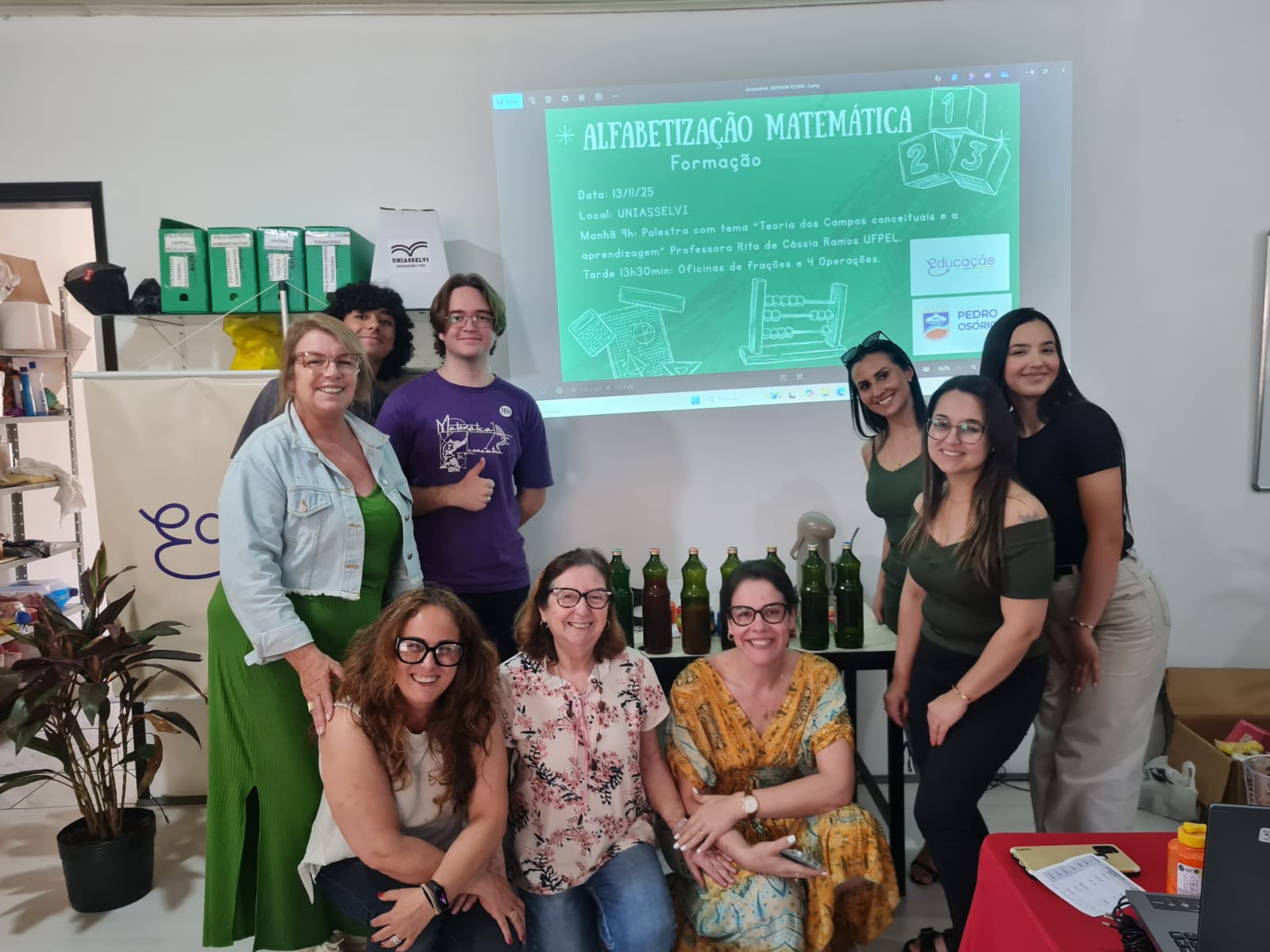 A convite da Secretaria Municipal de Educação e Desporto de Pelotas, as professoras Denise Nascimento, Neslei Nogueira, Gláucia e Rita Ramos participaram como convidadas em uma formação para professores de Matemática do município.