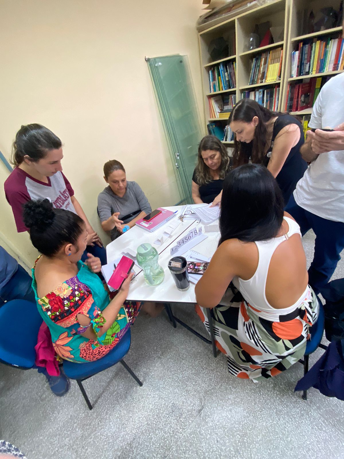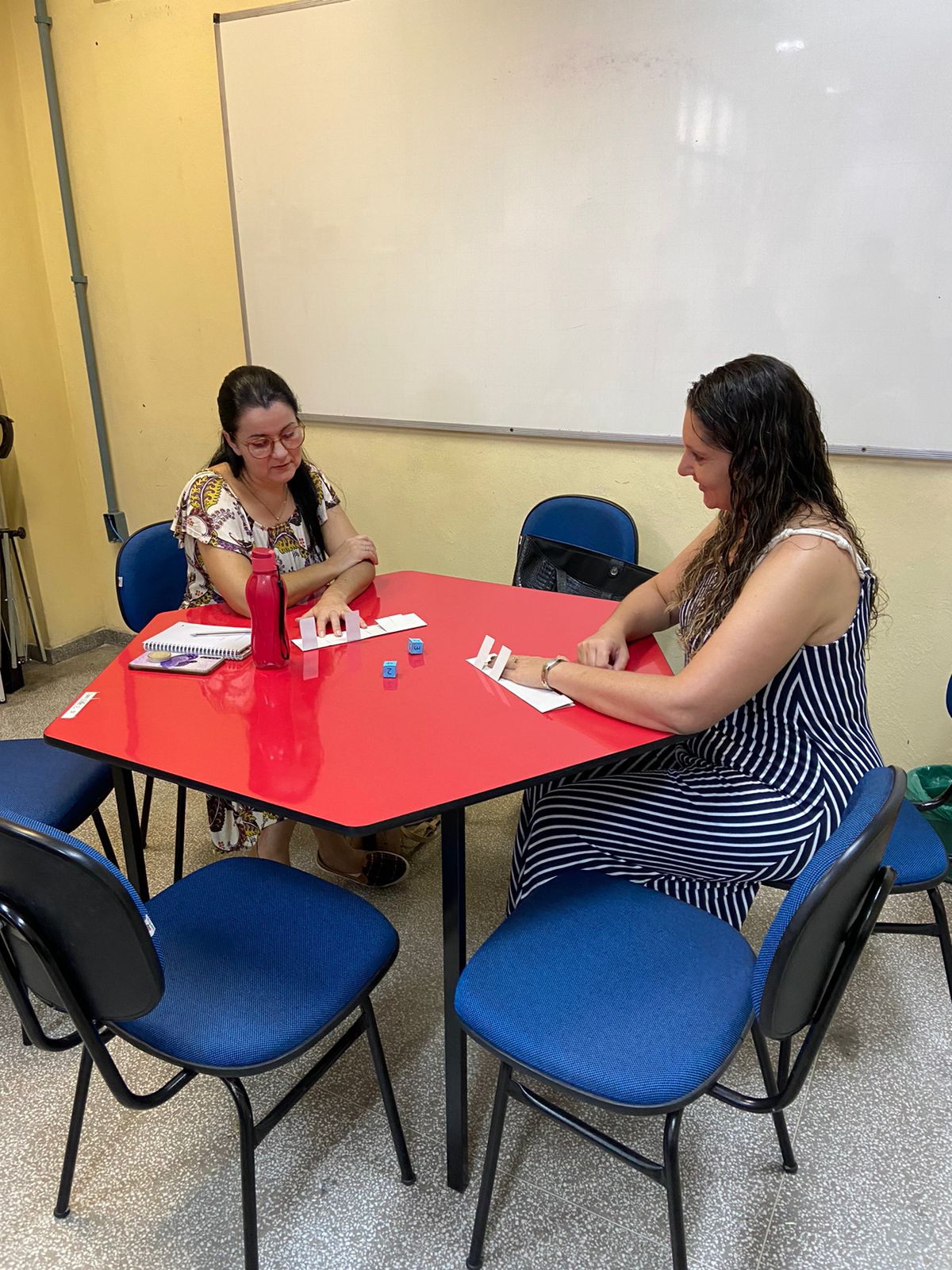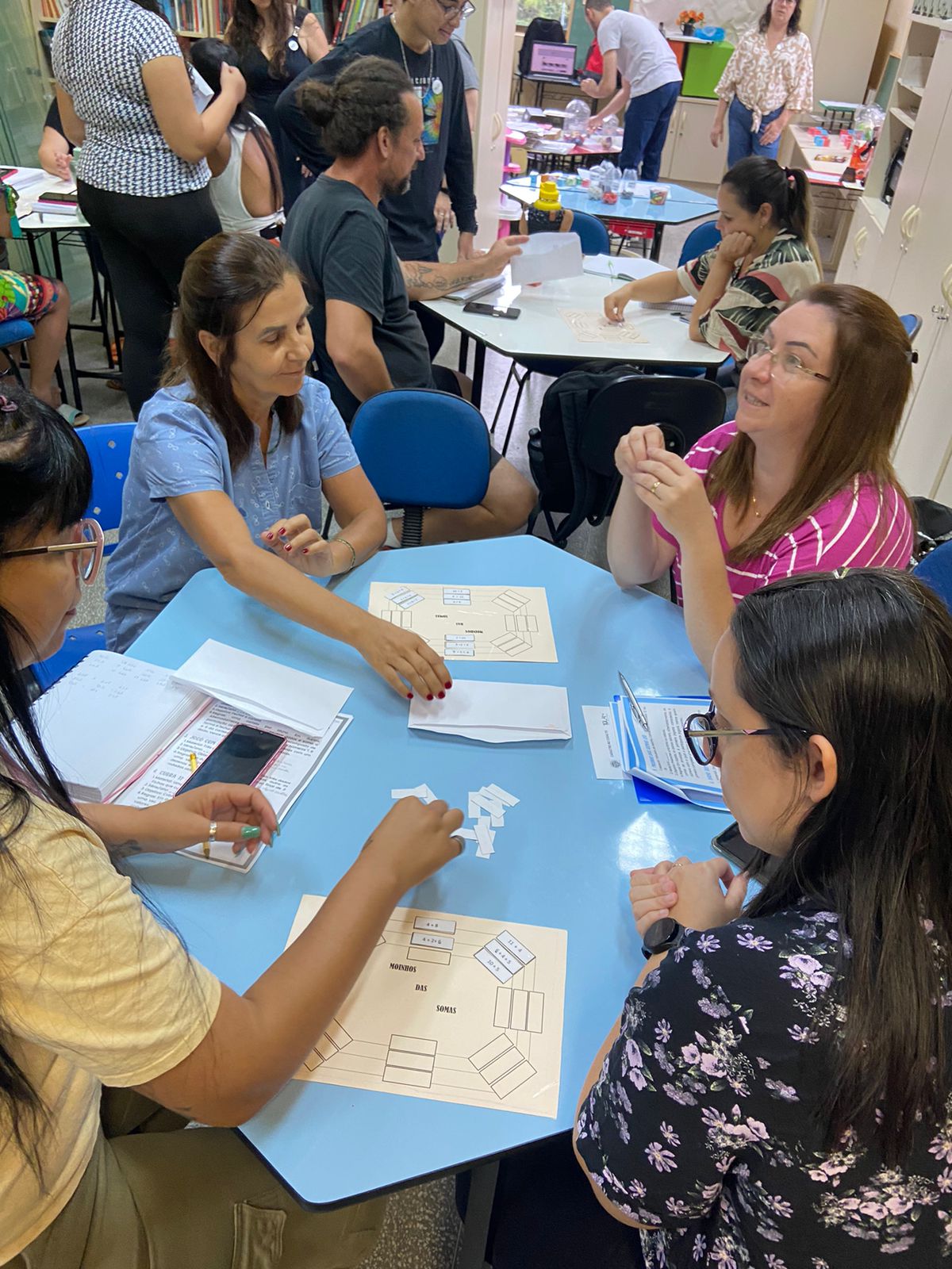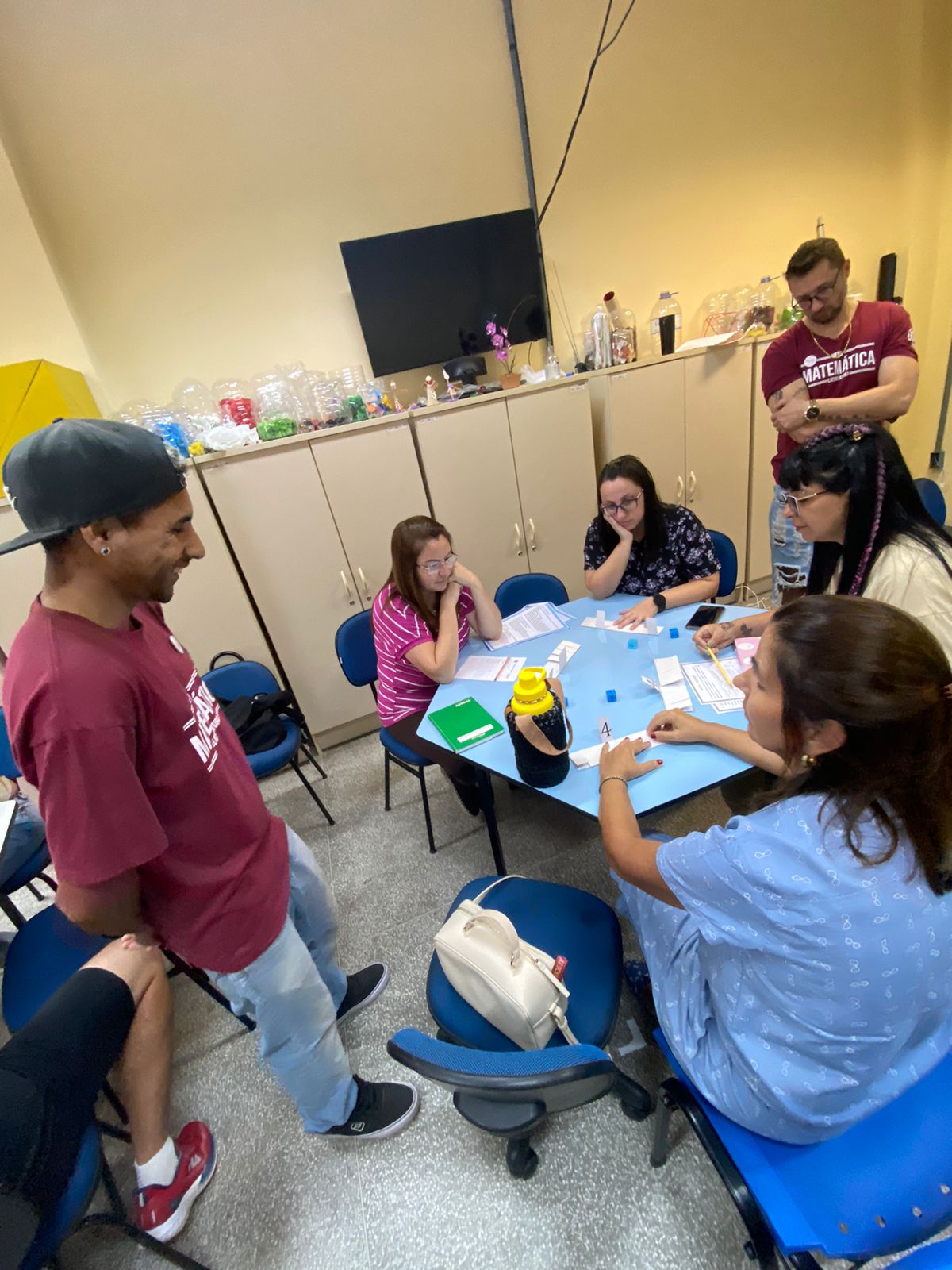 Foi um sábado divertido e produtivo, segundo uma das participantes, e os professores discutiram para quais anos e como poderiam adaptar os jogos para seus alunos.