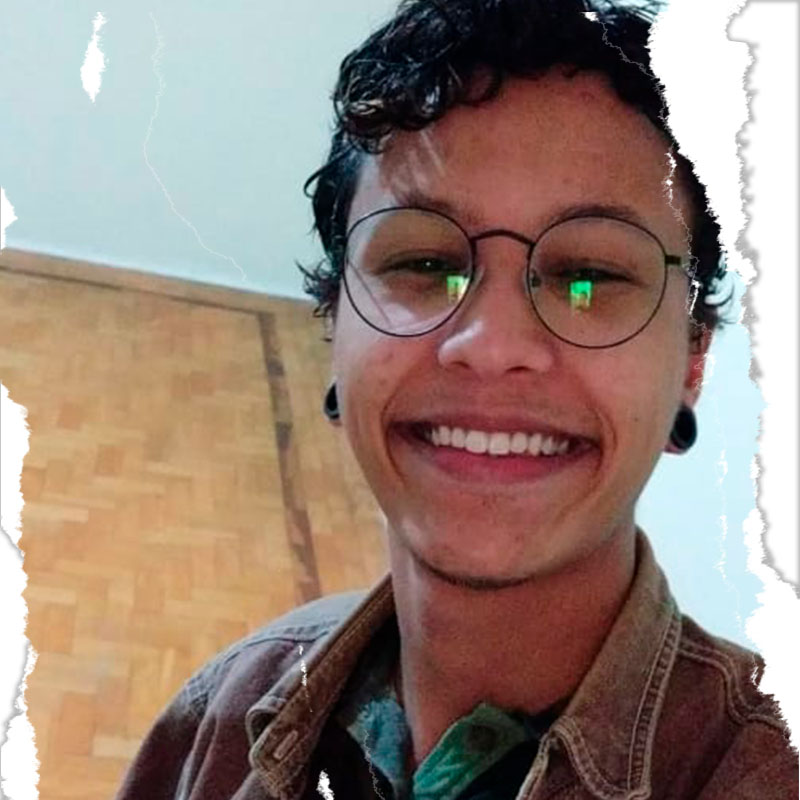 Bixa antropóloga. Adora devanear durante as reuniões, até que a discussão se torne outra coisa. Militante das causas LGBTQI+ a partir da perspectiva interseccional, atualmente pensa em uma aproximação entre antropologia e arte em suas pesquisas.