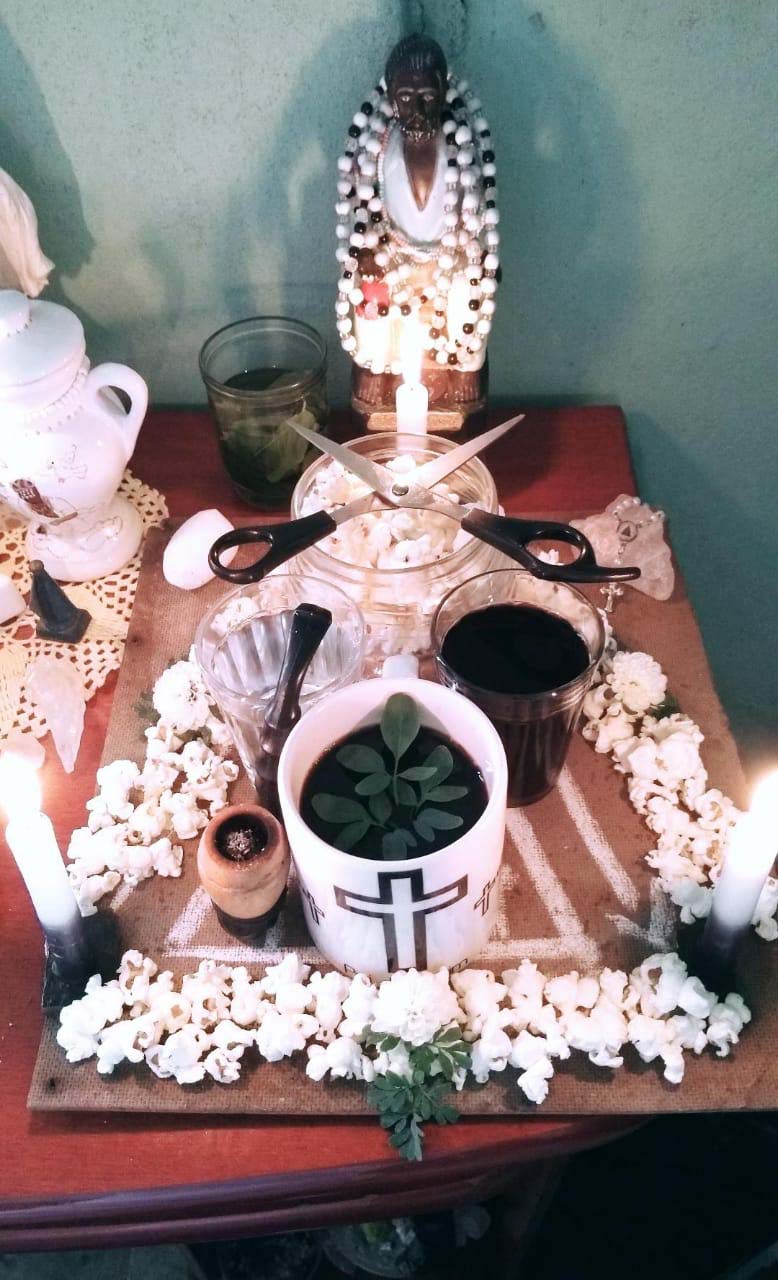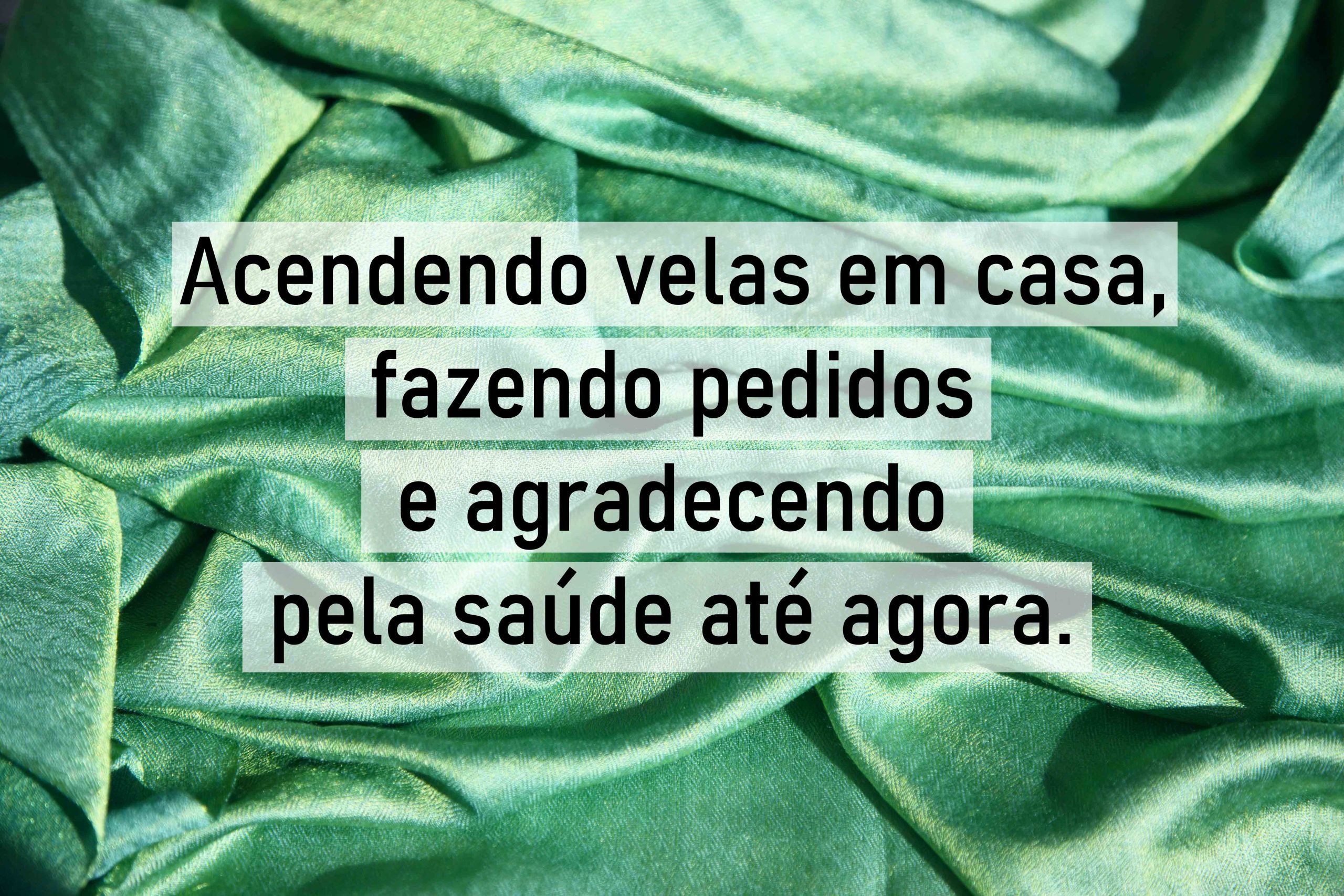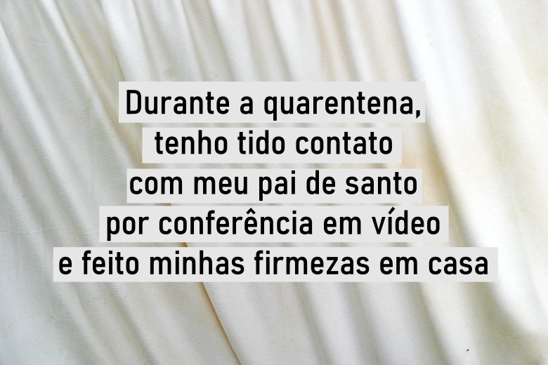 Infelizmente durante a quarentena, pela proteção de todos, nossa casa não está fazendo nenhum culto. Assim sendo, eu como religiosa, para me comunicar com os Orixás, tenho rezado muito todas as noites e pedindo principalmente à dona do meu eledá (cabeça), Iansã, proteção nesse momento tão difícil e doloroso que estamos vivendo.