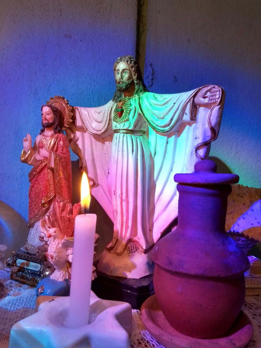 “Me relaciono com o sagrado vendo lives, lendo livros, fazendo curso EAD, acendendo velas, orando.”