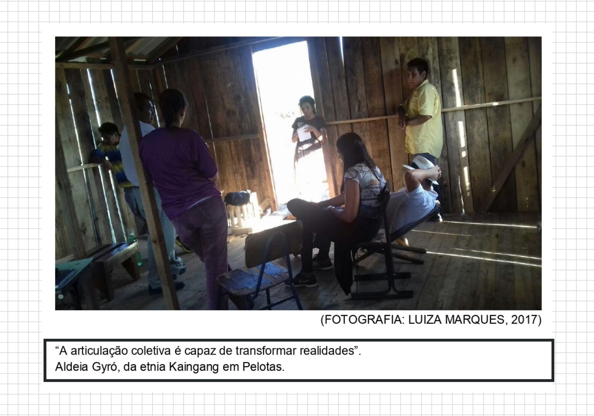 Questionamentos como estes foram levantados na disciplina intitulada Antropologia em contextos de conflitos, ofertada de forma optativa ao Bacharelado em Antropologia e à Pós Graduação em Antropologia e Arqueologia na Universidade Federal de Pelotas (UFPel), ministrada pela Profª Louise Prado Alfonso. A turma foi formada por estudantes da geografia, arquitetura, antropologia, arqueologia e turismo, da pós-graduação e da graduação, o que propiciou debates multidisciplinares, a partir de diferentes olhares.