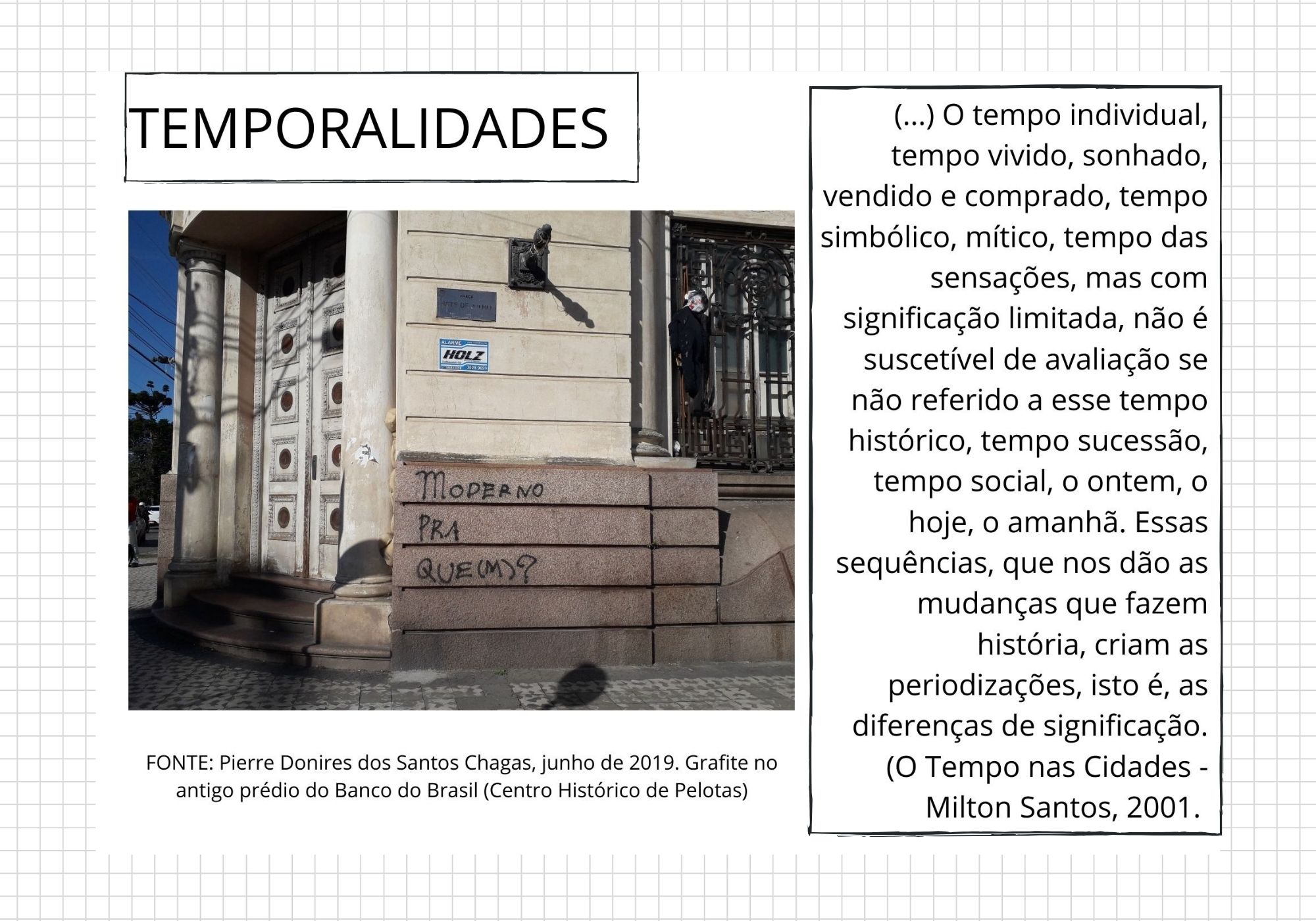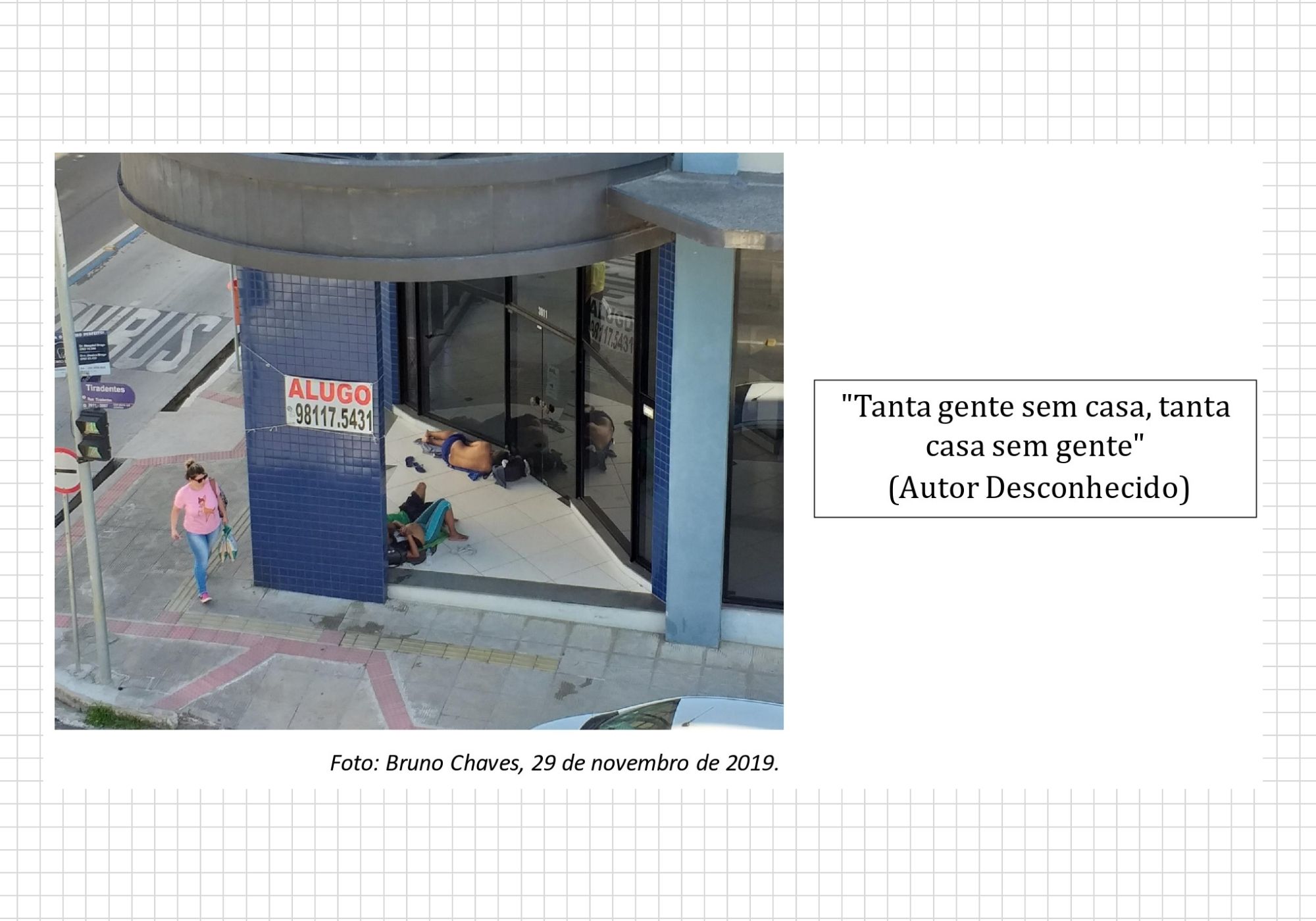 Os conflitos emergem do embates de ideias, das tensões de diferentes grupos, classes sociais e se revelam em contradições, contrastes, que nem sempre são visíveis a olho nu. Por vezes, são extremamente sutis, como algumas relações de poder e liames políticos. Cabe destacar ainda que ultrapassam, muitas vezes, a própria noção de tempo: o passado está bem ali na esquina, dormindo sob uma marquise.
