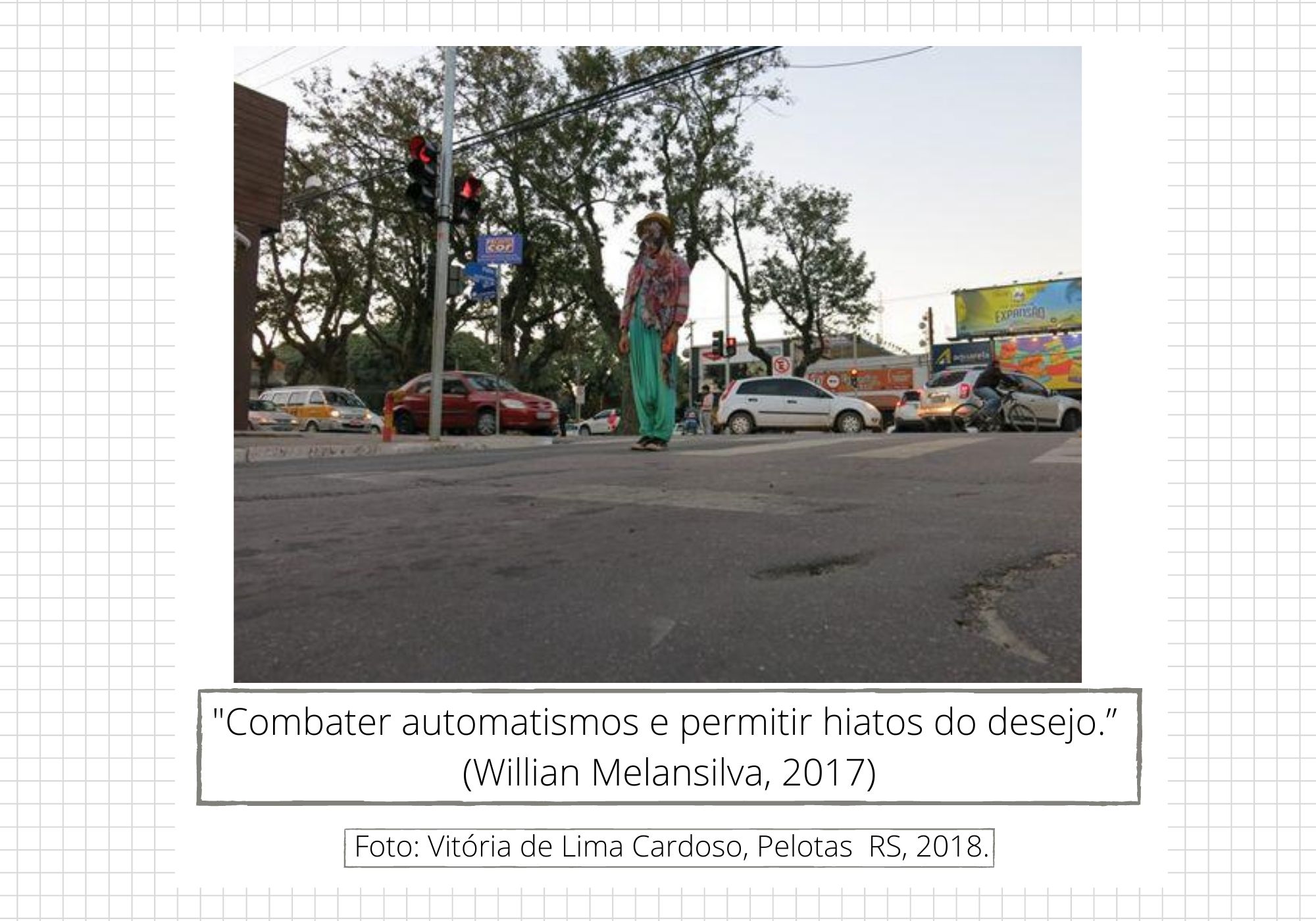 O conflito é evidenciado o tempo todo: na grafia em um muro, no baú de uma moto, num beijo em praça pública, navegando por aí… Em relações desiguais, de lutas, de estratégias, de negociações, de resistência, de ressignificações. Enfim, de diversas naturezas, mas constroem a cidade.