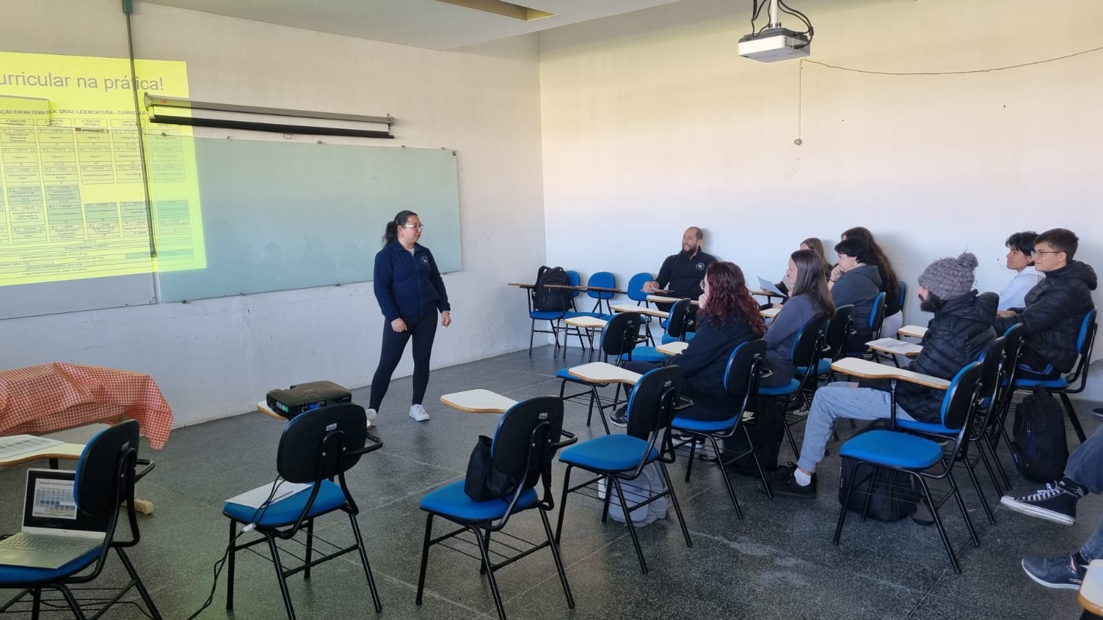 Na tarde do dia 25/09/2025, coordenação e secretaria do Curso apresentaram o novo currículo aos alunos do Curso de Licenciatura em Matemática. O currículo (versão 7) será implementado no semestre letivo 2026/1.