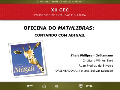 A Profa. Dra. Thaís Philipsen Grützmann juntamente com a Profa. Msc. Cristiane Winkel Elert (egressa do PPGEMAT/UFPel), ministraram no período da tarde a oficina do MathLibras: “Contando com Abigail: aproximando a matemática, a literatura e a natureza” na turma do 1º ano A do Colégio Sinodal Alfredo Simon.
