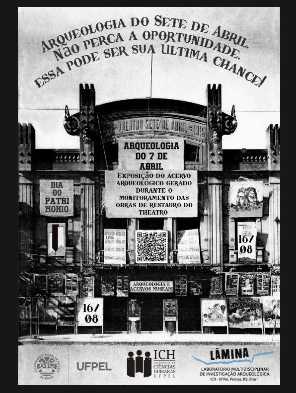 Agora, em 2025, te convidamos a visitar a exposição “Arqueologia do Sete de Abril. Não perca a oportunidade. Essa pode ser sua última chance!”. Fruto de um semestre inteiro de trabalho, a mostra busca incentivar a reflexão sobre a importância do acervo arqueológico do Theatro e defende sua permanência em Pelotas.