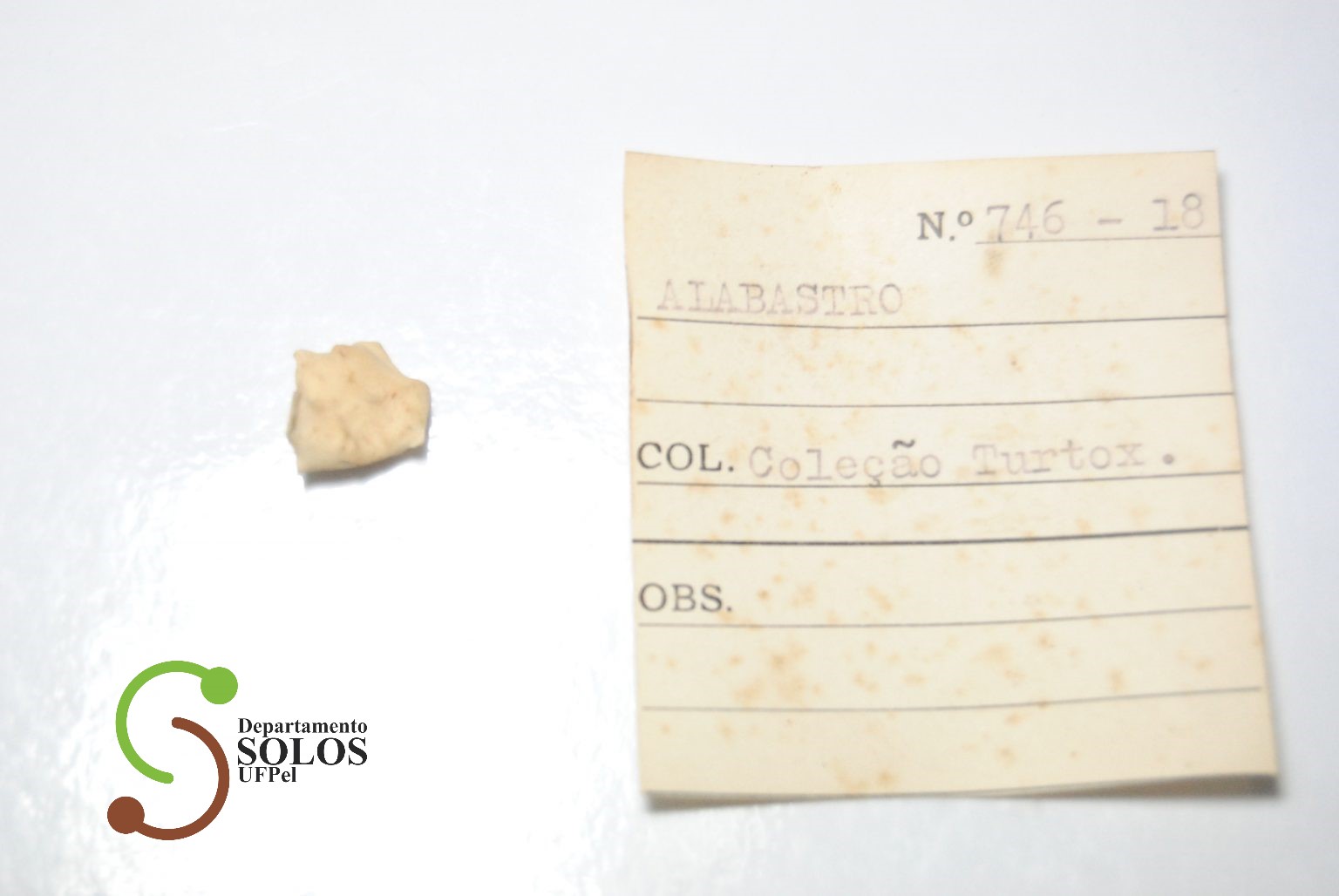 Textura: O alabastro de gesso é macio, sendo riscado com a unha (dureza 1,5 a 2);