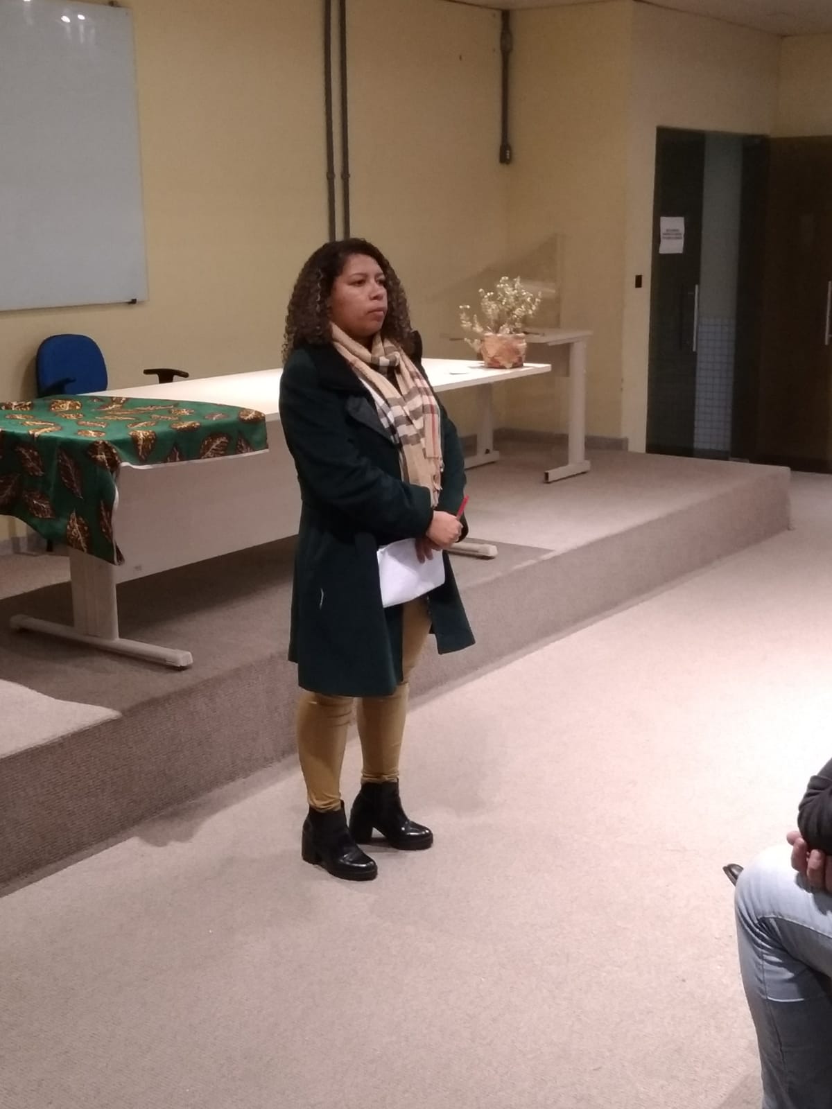 Na sequência, a servidora técnico-administrativa Fernanda de Medeiros Cunha, falou sobre a prática nas bancas de heteroidentificação, trazendo relato sobre suas experiências como integrante das bancas, abordando a forma de realizar os procedimentos e os aspectos formais do processo.