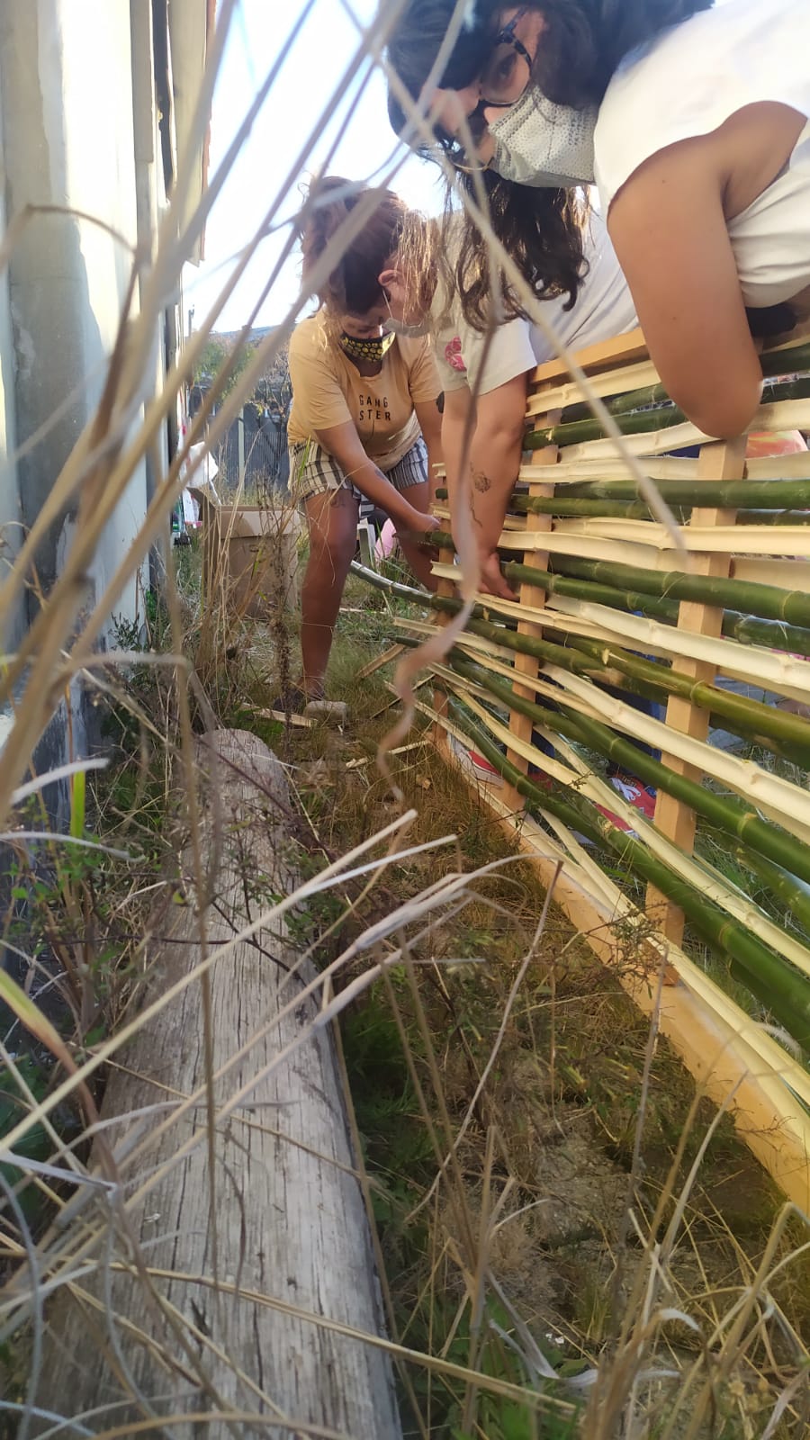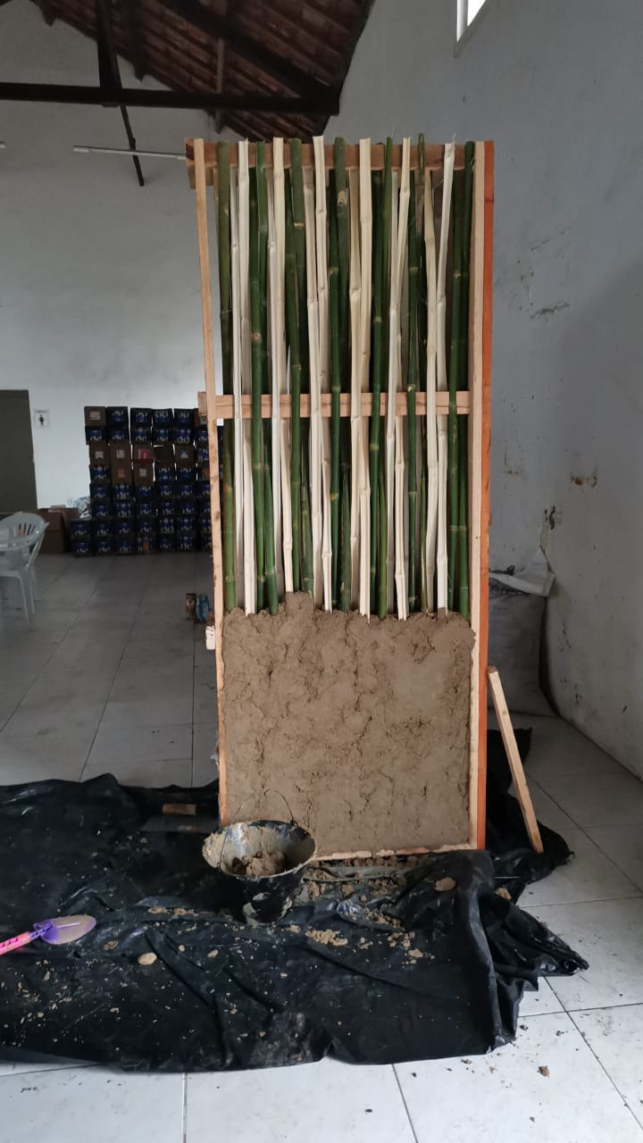 Dentro das oficinas de técnicas construtivas naturais, foram desenvolvidos protótipos de paredes utilizando bambu e terra crua. A técnica foi ministrada pelo arquitetos da Associação Kilômetro Zero – AK0: Stefan Pollak e Sara Parlato, que já desenvolveram diversas oficinas pelo mundo.