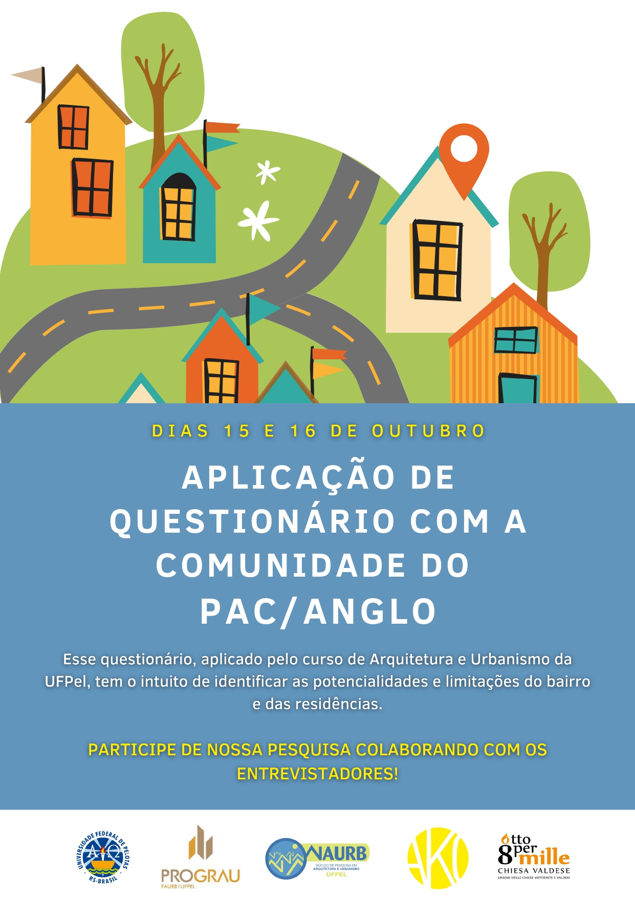 Nos dias 15 e 16 de outubro de 2021, foi aplicado pelo NAUrb na comunidade do Loteamento PAC/Anglo em Pelotas/RS o DRUP – Diagnóstico Rápido Urbano Participativo. O Diagnóstico Rápido Urbano Participativo (DRUP) é uma ferramenta que indica um norte para as etapas de estudos e ações com a população, referentes a melhoria urbana e habitacional.