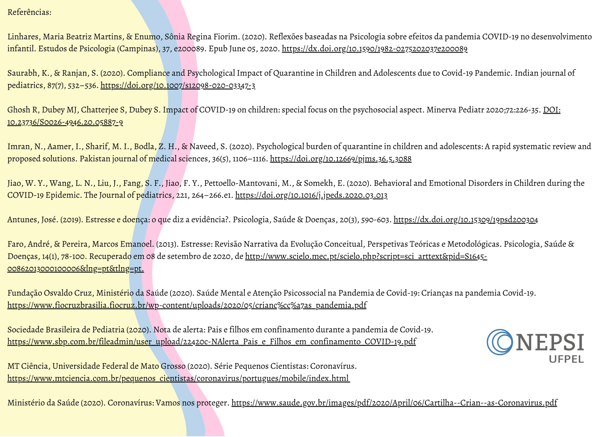 Estresse infantil durante a pandemia de Covid-19