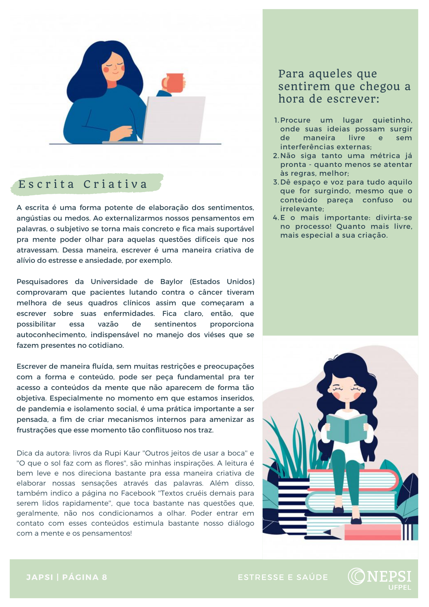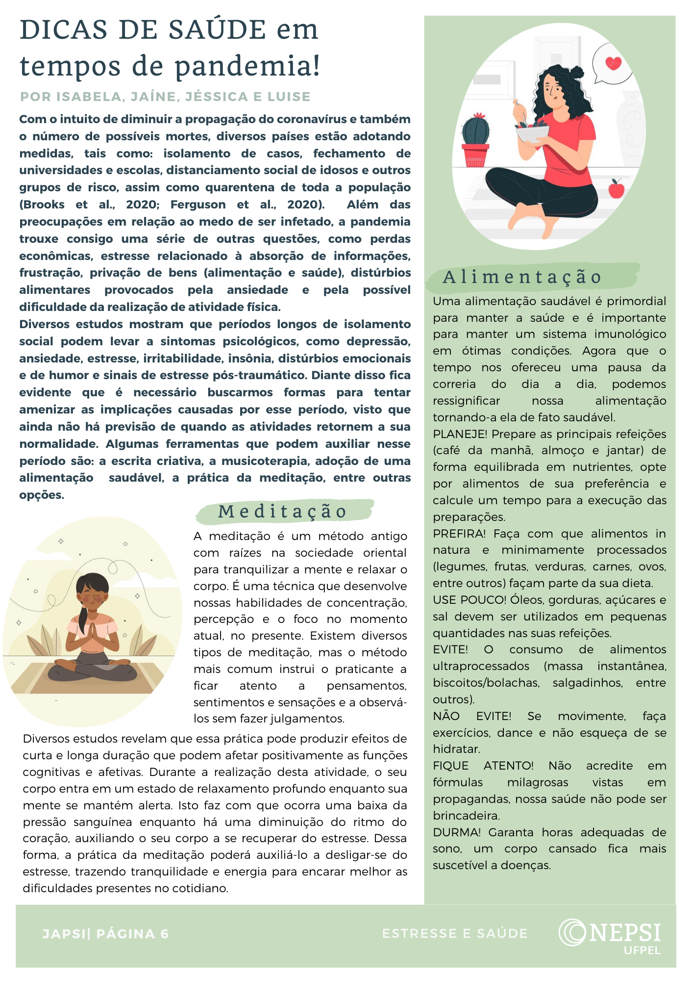 Cada trabalho será divulgado no wordpress institucional (nepsi), no Instagram (@ufpel_nepsi) e Facebook (ufpel.nepsi). Todos os trabalhos estão disponíveis em https://wp.ufpel.edu.br/nepsi/2020/10/15/trabalhos_estresse_saude/
