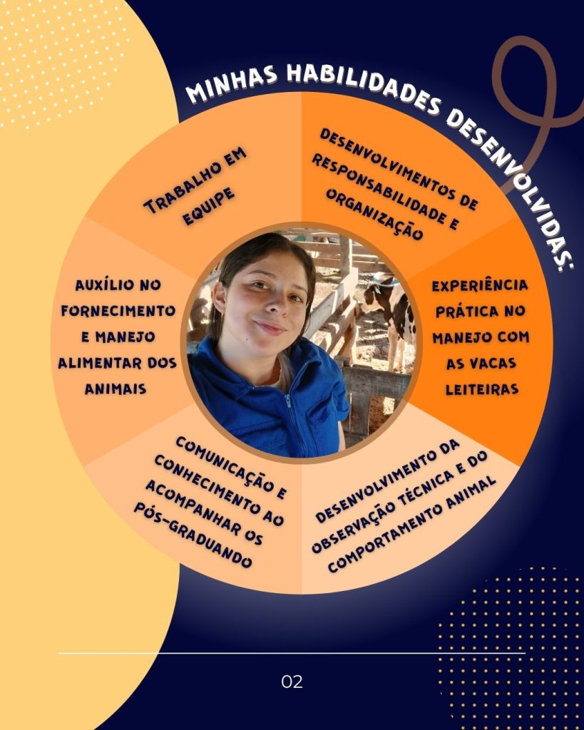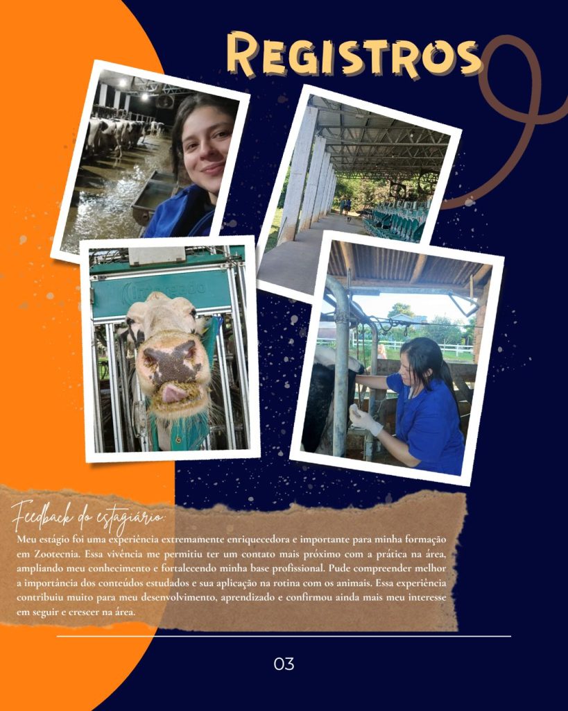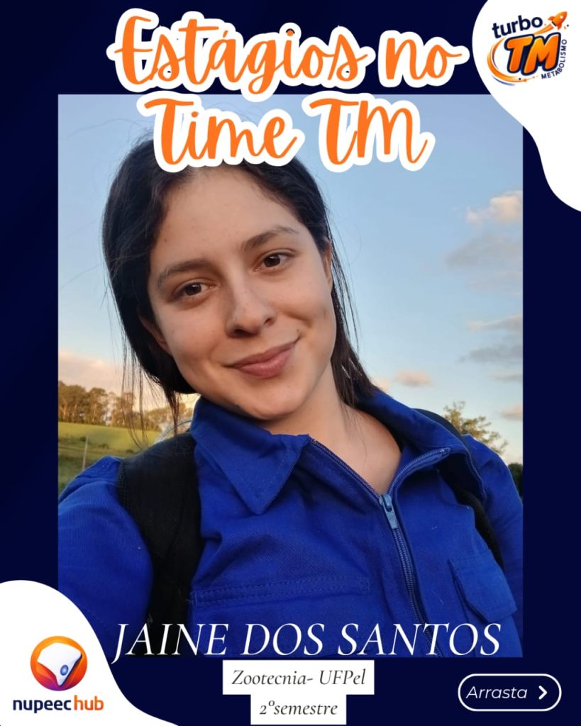 A graduanda Jaine, do 2° semestre de Zootecnia- UFPel, compartilhou um pouco da sua experiência durante o estágio de férias no nosso time, no qual ela acompanhou tanto a rotina da equipe no prédio e no pavilhão de ruminantes, quanto na fazenda Caleli, nossa parceira, com manejos realizados na bovinocultura leiteira.