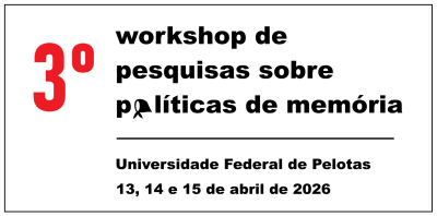Convidamos as/os interessadas/os a participarem do 3º Workshop de pesquisas sobre políticas de memória, evento organizado pelo Núcleo de Pesquisa sobre Políticas de Memória (NUPPOME | UFPEL). O workshop ocorrerá no formato híbrido (Online e presencial) entre os dias 13, 14 e 15/04/2026. O prazo para o envio de resumos encerra em 1º/12/2025. O evento conta com o apoio do Programa de Pós-Graduação em Ciência Política (PPGCPOL | UFPEL), do Laboratório de História Política e Social (LAHPS | UFJF), do Núcleo de Estudos sobre o […]
