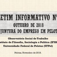 O Observatório Social do Trabalho acaba de publicar o Boletim Informativo Nº 09, de Pelotas, relativo à movimentação do emprego formal celetista do mês de setembro de 2018. Clique abaixo para acessar o boletim: Boletim Informativo Nº 09 Setembro de 2018 PELOTAS-RS