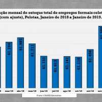 Segundo o Cadastro Geral de Empregados e Desempregados (CAGED) do Ministério do Trabalho (MTb), no mês de janeiro de 2019 ocorreram, em Pelotas, 1.889 admissões e 2.648 desligamentos, resultando em um saldo de -759 vínculos formais de emprego celetista. Com isso, a taxa de variação do emprego formal foi de -1,23%, com o estoque passando de 62.030 vínculos, em dezembro de 2018, para 61.271 em janeiro de 2019. O saldo do mês de janeiro de 2019 foi inferior ao saldo de -472 vínculos observado no […]