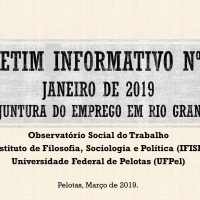 Em fevereiro, a conjuntura do emprego mostra-se estável em Pelotas e negativa em Rio Grande. Em Pelotas, houve um aumento do saldo de empregos formais de apenas +15 vínculos, uma situação de estabilidade, a taxa de variação sendo de +0,02%. Em Rio Grande, o saldo foi negativo, de -81 vínculos, a taxa de variação sendo de -0,21%. Esses dados revelam que a conjuntura local do emprego mostrou-se mais desfavorável em relação ao quadro nacional e estadual. No conjunto do país, o emprego formal apresentou uma […]