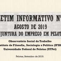 Segundo o Cadastro Geral de Empregados e Desempregados (CAGED) da Secretaria do Trabalho do Ministério da Economia, no mês de agosto de 2019 ocorreram, em Pelotas, 1.825 admissões e 1.844 desligamentos, resultando em um saldo de -19 vínculos formais de emprego celetista. Com isso, a taxa de variação do emprego formal foi de -0,03%, com o estoque passando de 60.636 vínculos, em julho, para 60.617 vínculos, em agosto de 2019. O saldo do mês de agosto, apesar de negativo, foi levemente melhor que o saldo […]