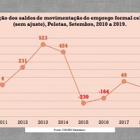 Segundo o Cadastro Geral de Empregados e Desempregados (CAGED) da Secretaria do Trabalho do Ministério da Economia, no mês de setembro de 2019 ocorreram, em Pelotas, 1.670 admissões e 1.799 desligamentos, resultando em um saldo de -129 vínculos formais de emprego celetista. Com isso, a taxa de variação do emprego formal foi de -0,21%, com o estoque passando de 60.619 vínculos, em agosto, para 60.490 vínculos, em setembro de 2019. O saldo do mês de setembro foi inferior ao saldo de agosto de 2019 (-19 […]