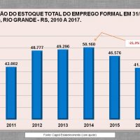 Queda no mês de dezembro foi de -1,49% No mês de dezembro de 2017 ocorreram, em Rio Grande, 1.041 admissões e 1.637 desligamentos, resultando em um saldo de -596 vínculos formais de emprego celetista. Com isso, a taxa de variação do emprego formal foi de -1,49%, com o estoque passando de 40.080 vínculos, em novembro, para 39.484 em dezembro (com ajuste). Taxa de variação do estoque acumulado no ano, em 2017, foi de -5,11% No acumulado do ano ocorreram em Rio Grande 14.382 admissões e […]