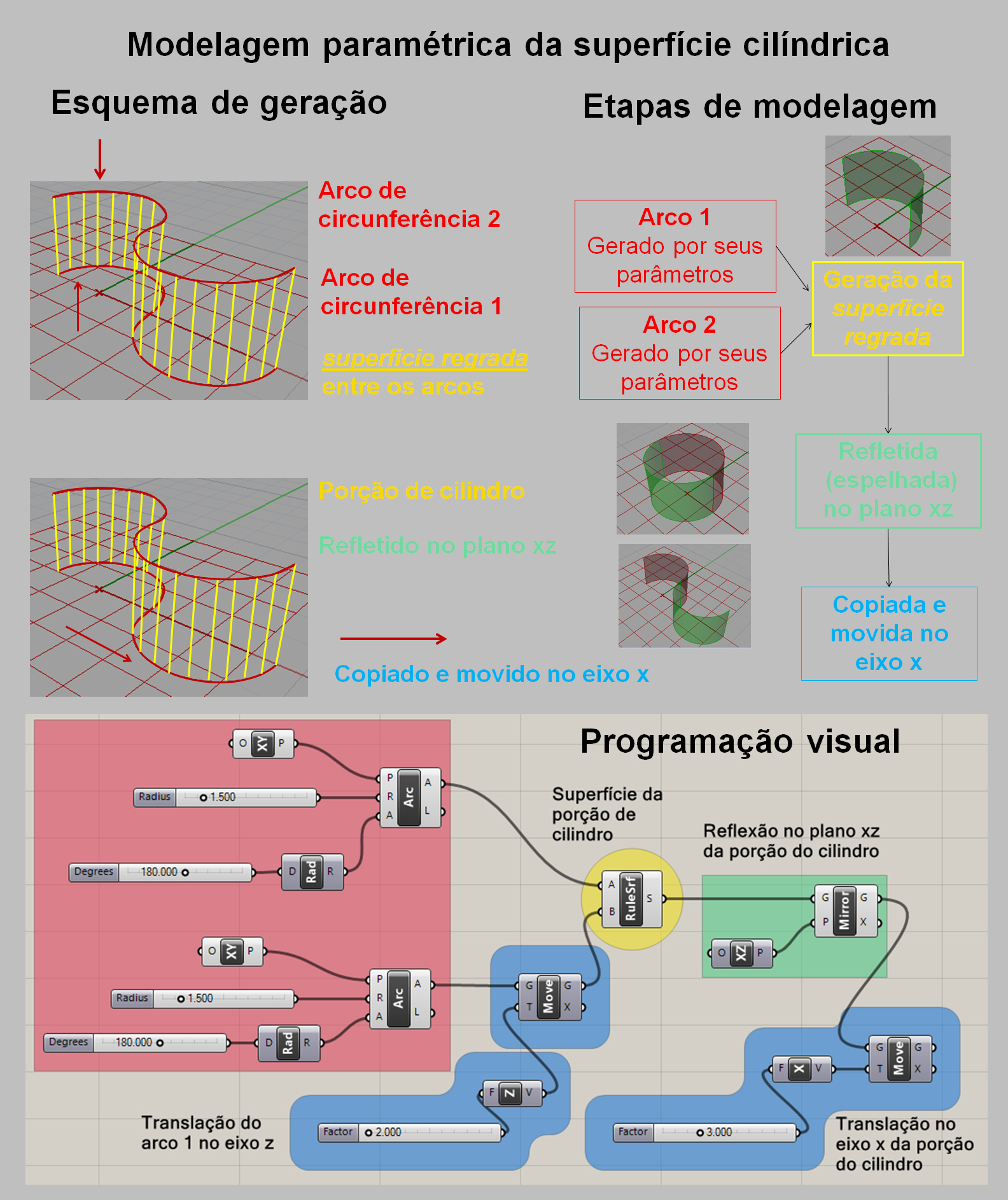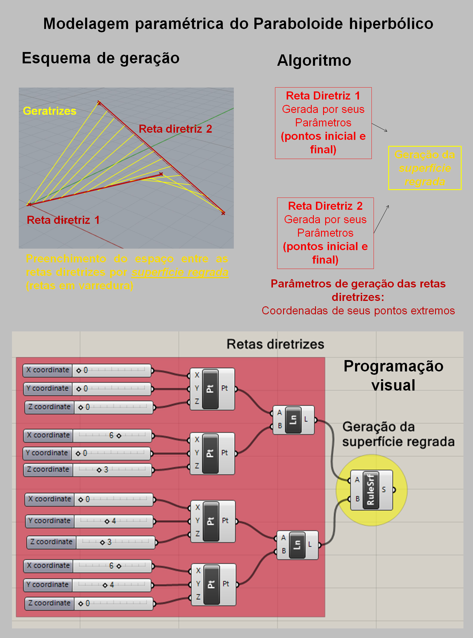 - Reconhecer os conceitos e as técnicas de modelagem paramétrica e da geração de superfícies curvas por meio da representação algorítmica de superfícies da classe das retilíneas desenvolvíveis;