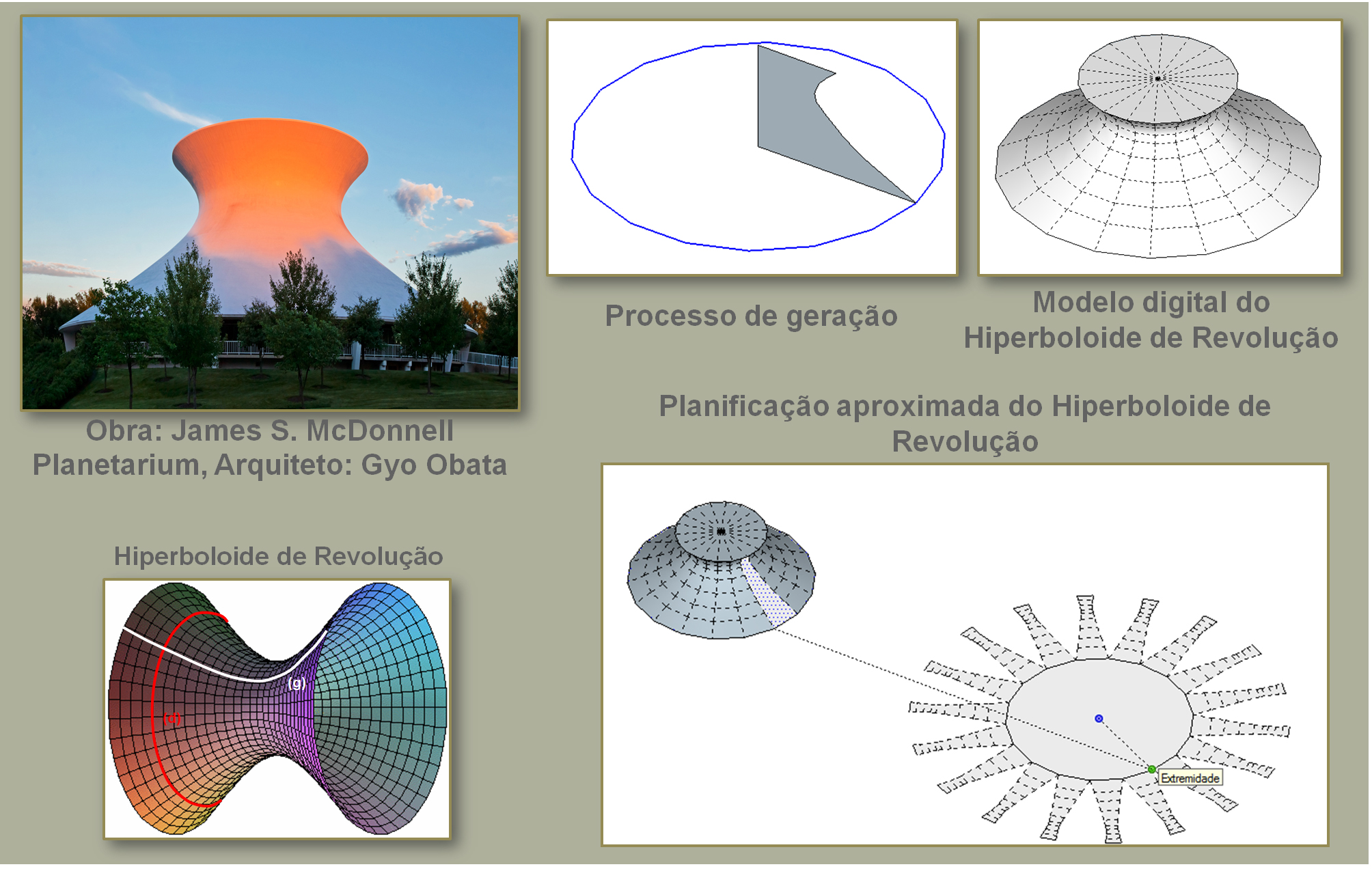 - Planificação de superfícies propriamente curvas de revolução: hiperbolóide