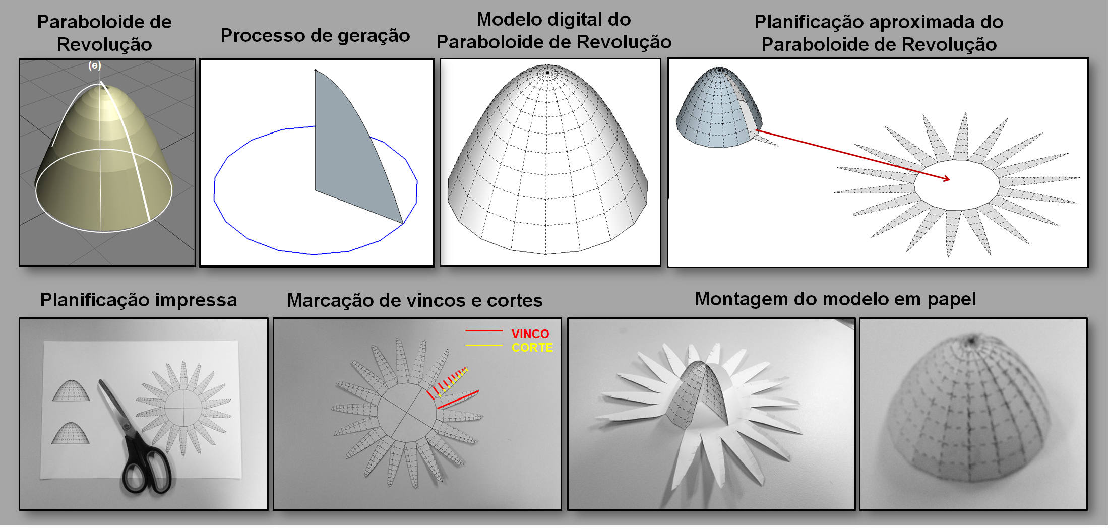 Esta oficina objetiva reconhecer técnicas de modelagem e planificação digital, adequadas à construção de modelos físicos em papel de superfícies curvas recorrentes em obras de arquitetura. São abordadas as superfícies circulares de revolução e quádricas em geral (classificação de superfícies da Geometria Descritiva), utilizando-se de técnica de planificação aproximada, por meio de um plug-in de planificação. As etapas apresentadas buscam desenvolver processos de modelagem que facilitam a montagem dos modelos em papel de tais superfícies.