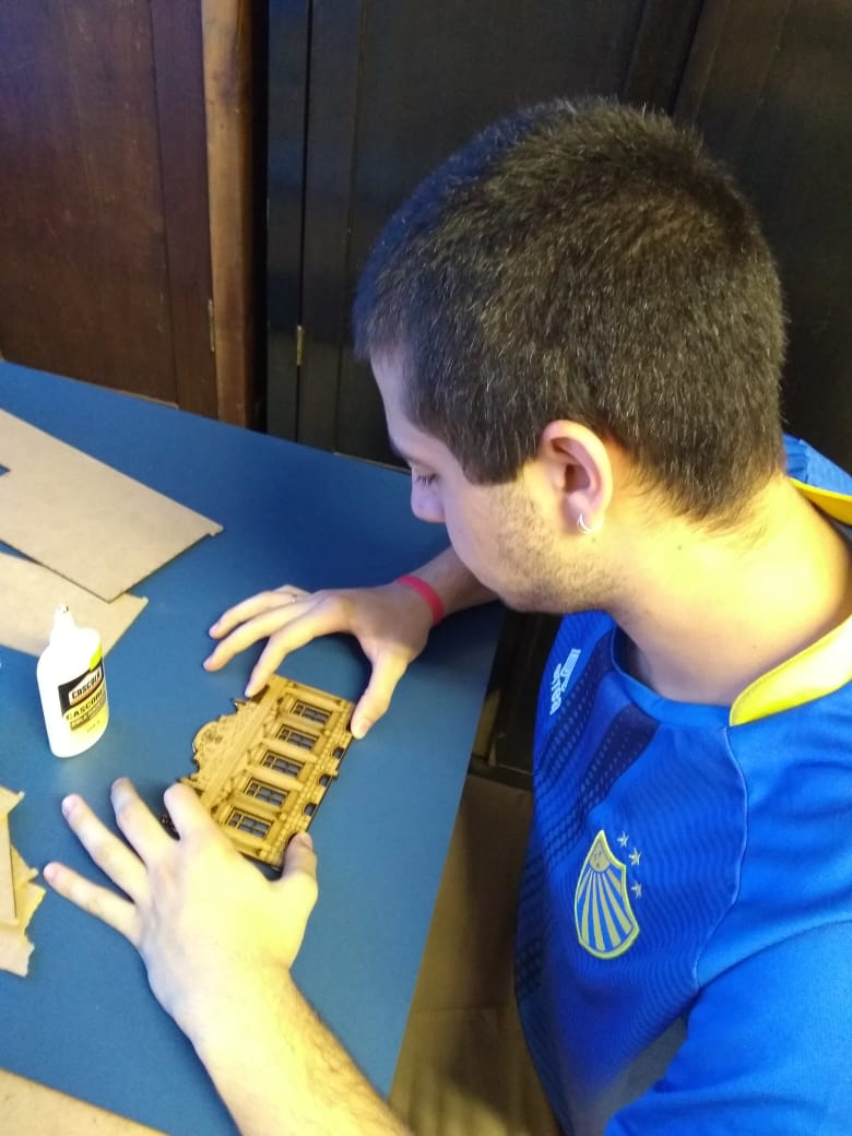 A ação faz parte da Disciplina de Requisitos Curriculares de Extensão, do curso de Arquitetura e Urbanismo-UFPEL, na qual os acadêmicos iniciaram o desenvolvimento de uma maquete tátil do Casarão 8 (Museu do Doce-Pelotas-RS), por fabricação digital a partir do corte à laser.