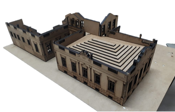 SILVA, S. Q.; ENKE, M. S.; ORTIZ, B. F.; FRANCO, E. M.; BORDA, A.B.A.S. Maquete do Museu do Doce (Casarão 8) na escala 1:100, 2019 (Maquete)