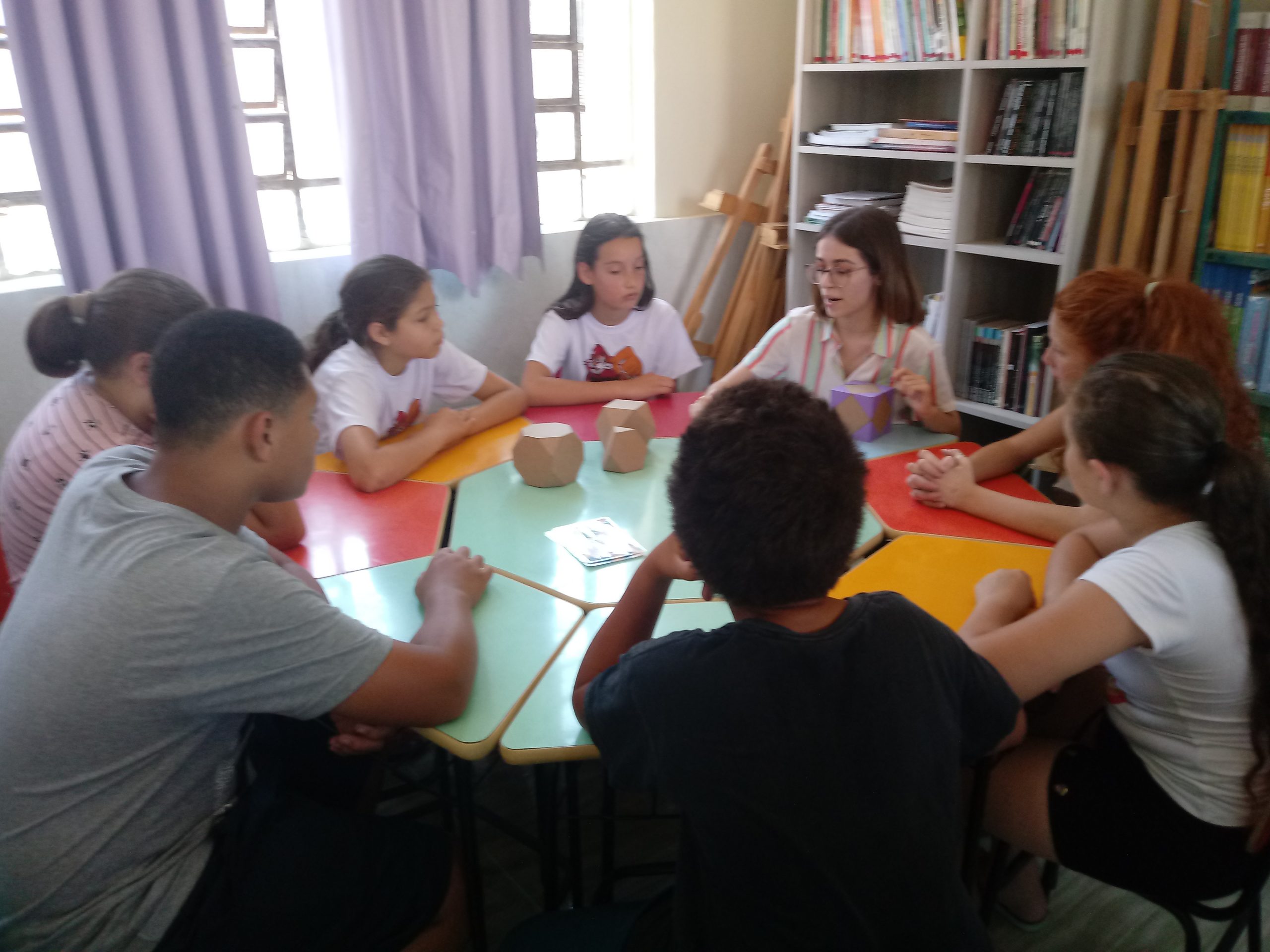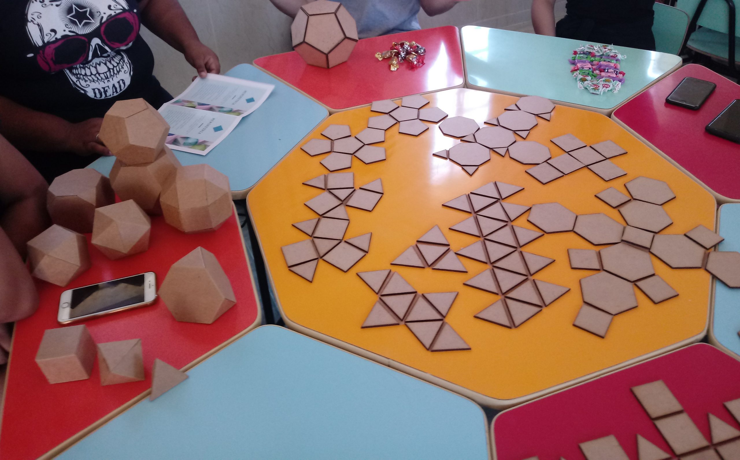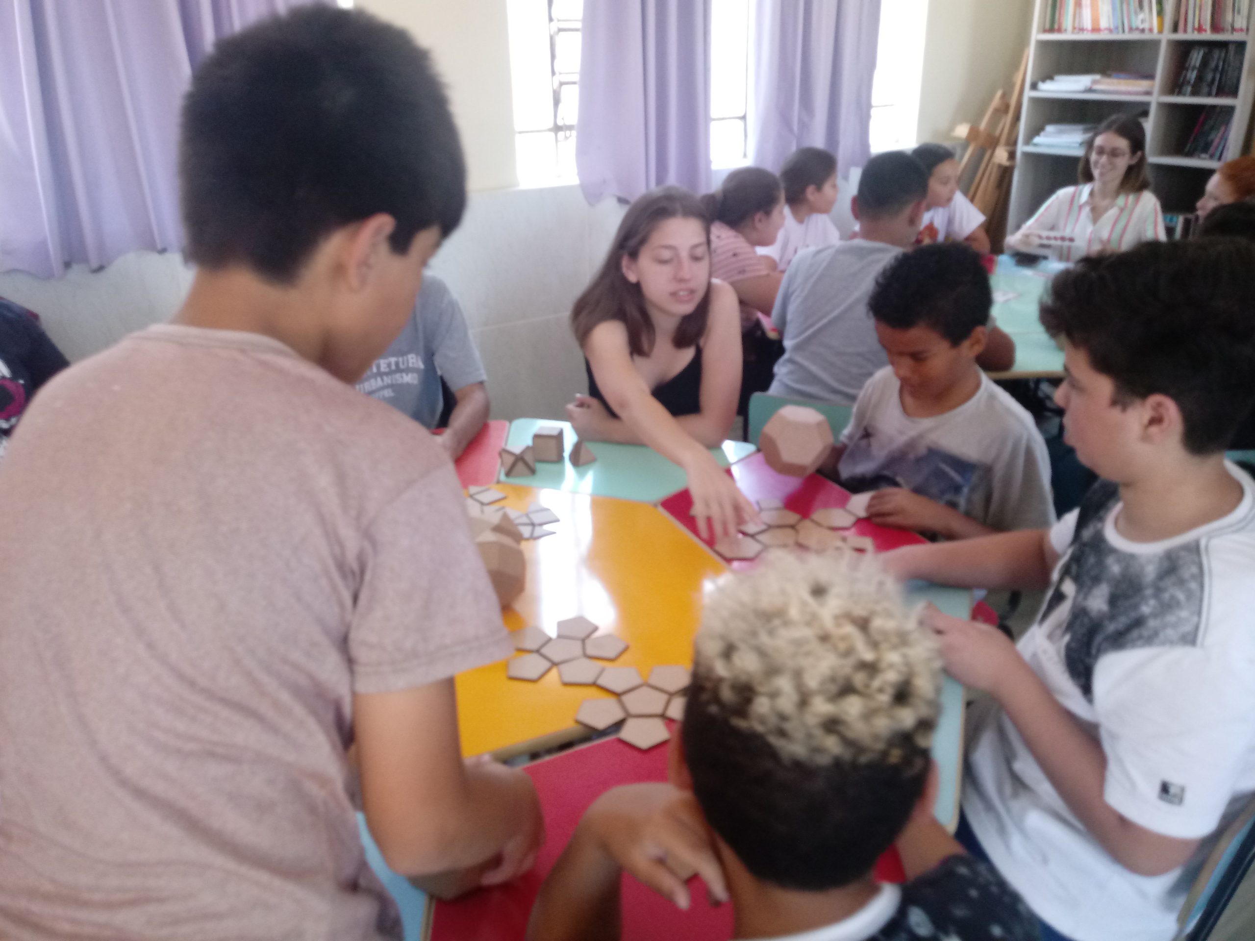 Os acadêmicos da disciplina de GGDI (Geometria Gráfica e Digital I) do curso de Arquitetura e Urbanismo-UFPEL, desenvolveram uma ação de extensão na Escola Estadual de Ensino Fundamental Dr. José Brusque Filho – Pelotas. A ação foi realizada com uma turma de quinta série do ensino fundamental, a partir de uma atividade lúdica com os jogos de geometria para o conhecimento dos poliedros.