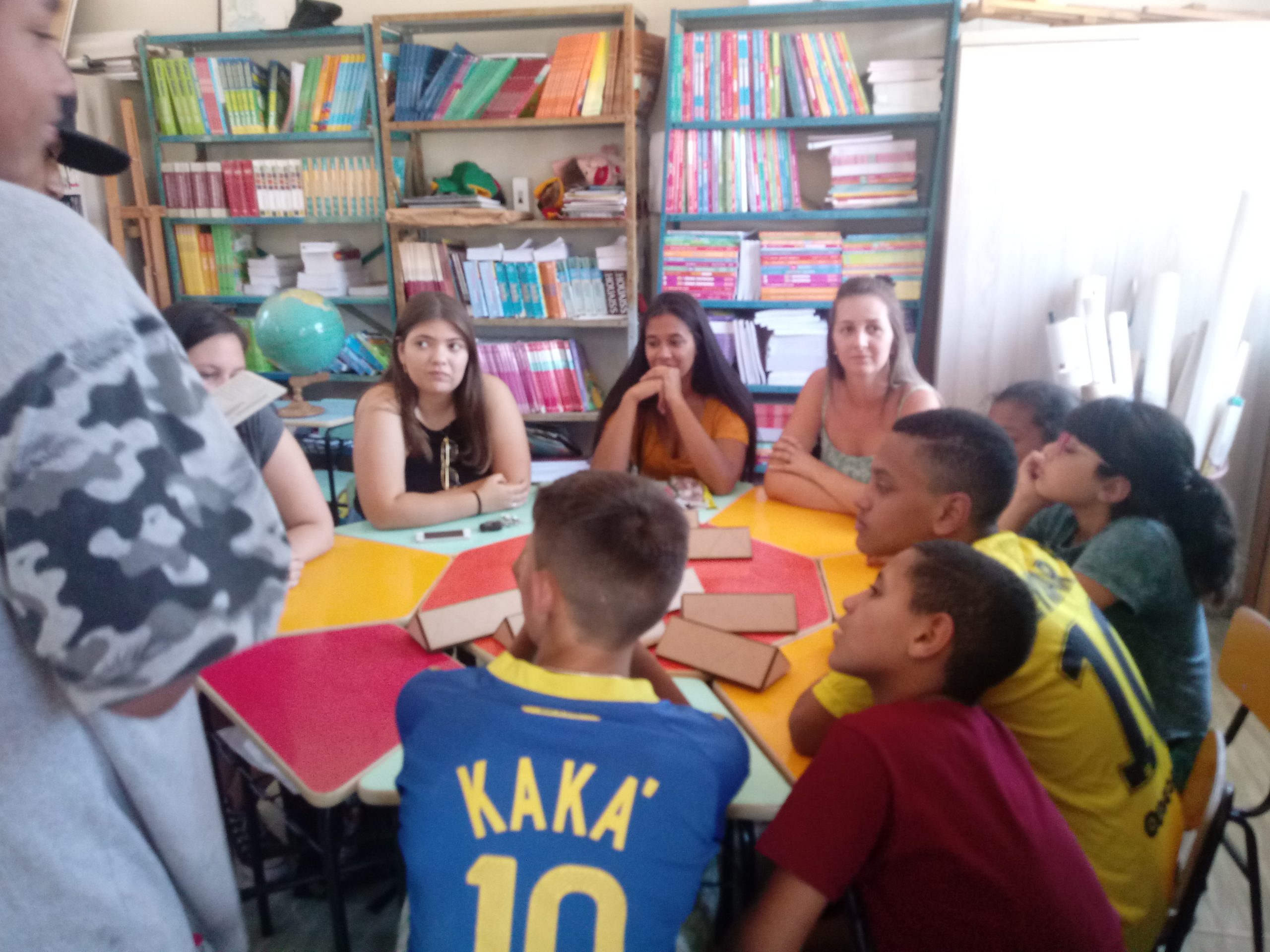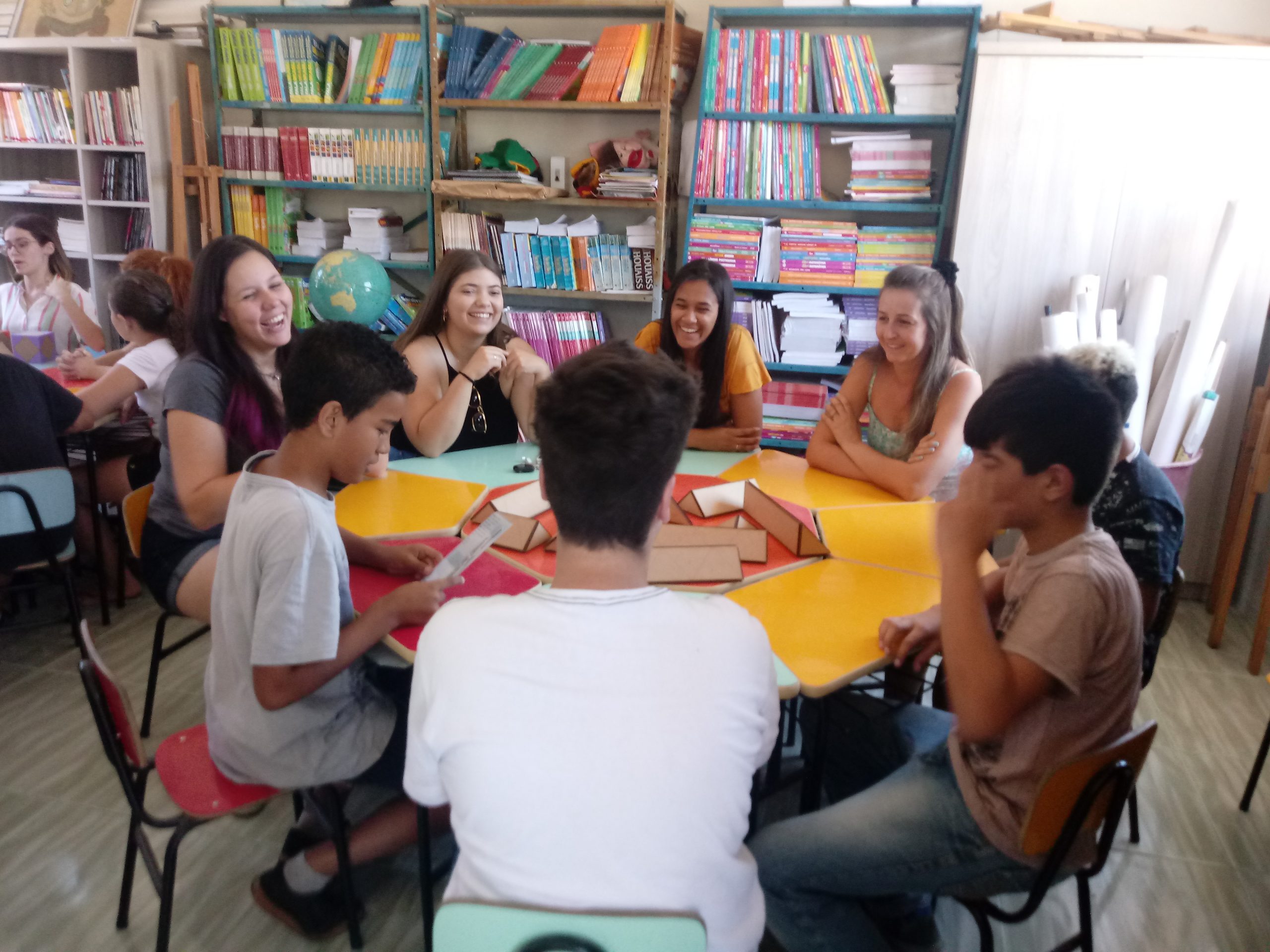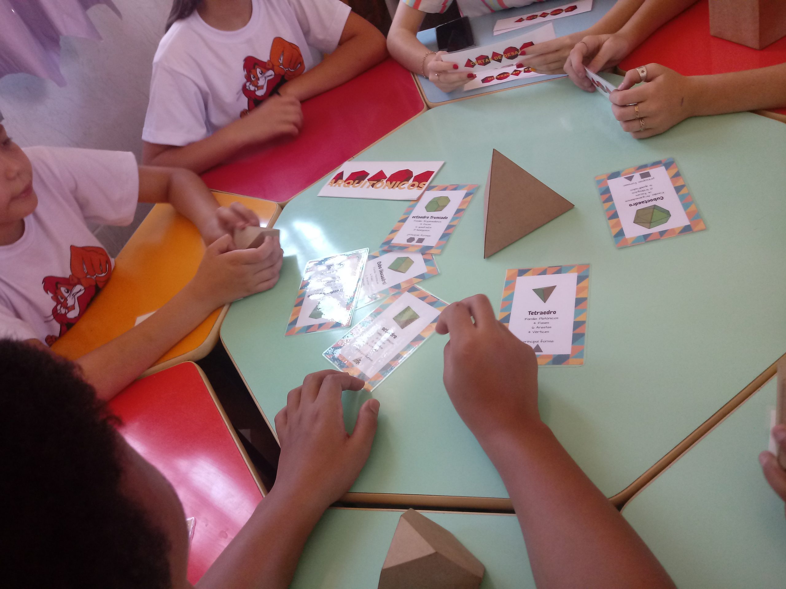 Os acadêmicos da disciplina de GGDI (Geometria Gráfica e Digital I) do curso de Arquitetura e Urbanismo-UFPEL, desenvolveram uma ação de extensão na Escola Estadual de Ensino Fundamental Dr. José Brusque Filho – Pelotas. A ação foi realizada com uma turma de quinta série do ensino fundamental, a partir de uma atividade lúdica com os jogos de geometria para o conhecimento dos poliedros.